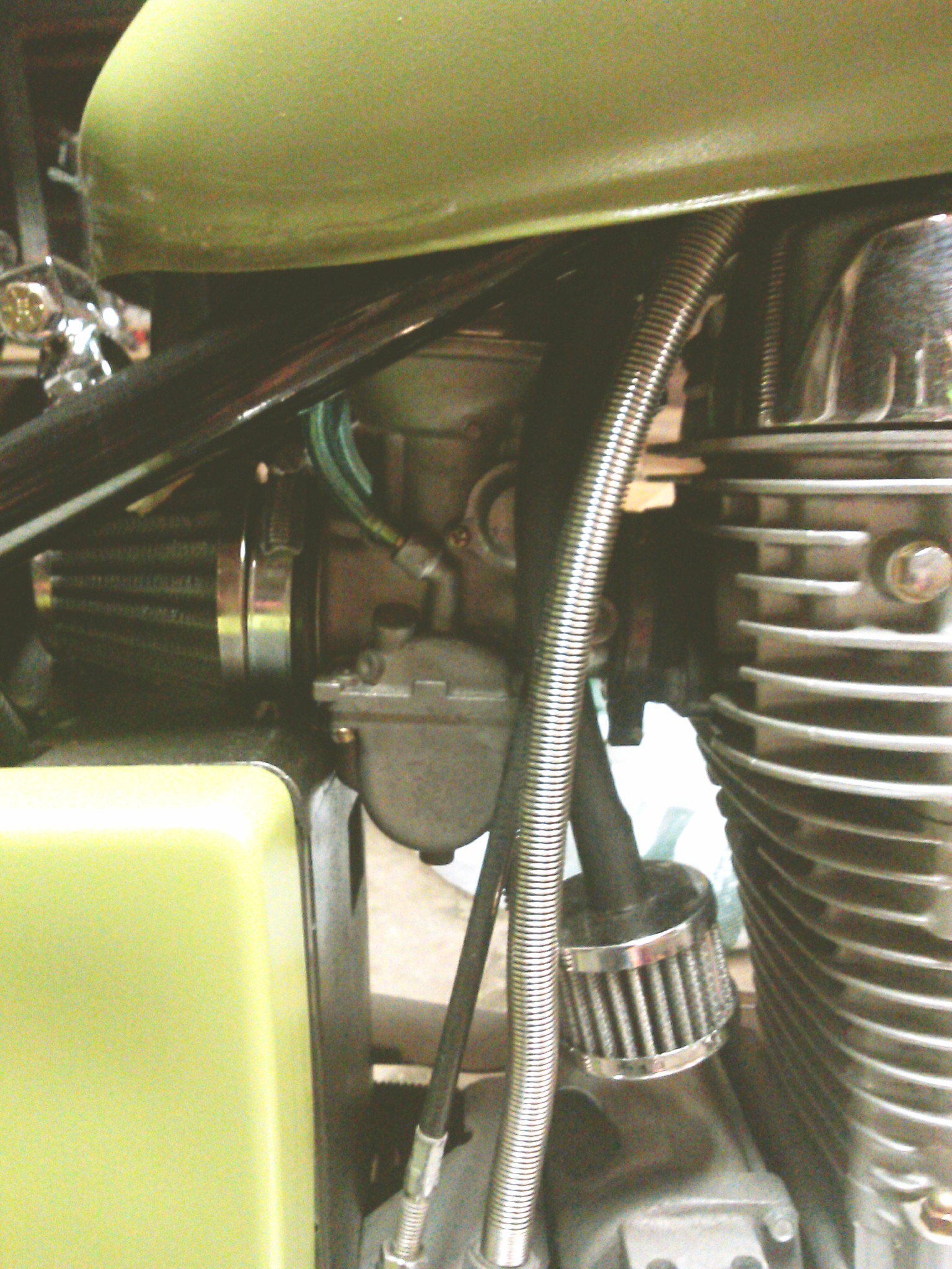 Thanks guys I found the seat on eBay it was around 80.00 bucks it's a little smaller then what I thought but I'm a little guy so it works. I'm really thinking of doing a raw steal look I can't decide what color to paint it and also I'm trying to figure out how I can mount rearrear turn signals any ideas I can get a better pic of the back if need be? My tank has some small pin holes after being sand blasted sucks so I'm working on that also. I wanna ride so bad lol