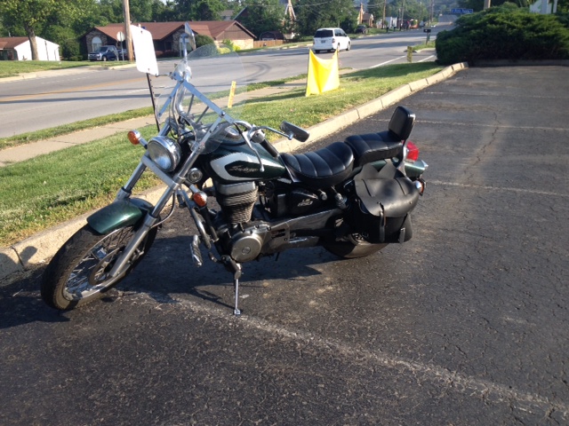 At the small strip center next to my office, there is a Savage that has been sitting for almost a week. The store manager said the owner pulled up to the pumps, got gas......then pushed the bike out to the edge of the parking lot. I went out and looked at the bike and it has 15,000 miles on it, the battery is gone, and it has a bad head plug leak. I am probably going to leave him a note so he can find this site.....and how to contact me. He needs a head plug fix....and probably a Versy by now.