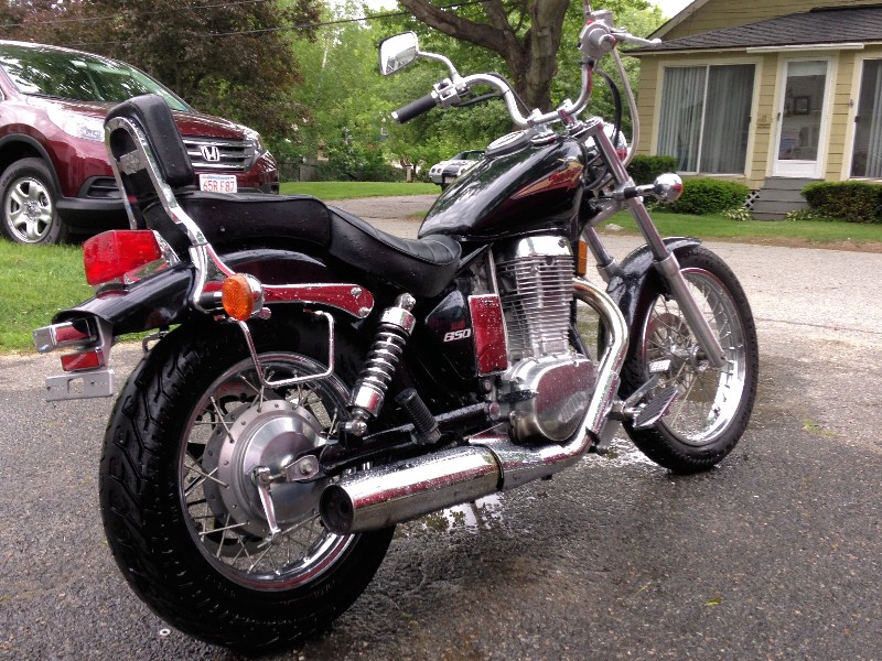 Just picked up my first street bike at 56. Found an ad on Craig's List for a 1997 Savage 650 that has been sitting for 7 years, $600. Well that was enough for me to take a look. Pulled up to the house in an upper class neighborhood and when the garage door open I knew it was mine. I figure the inside of the tank would be rusty so I shined the light in and laughed, it was spotless, stinky but spotless. Brought it home, cleaned the tank and carb, put a new battery in and off she went.