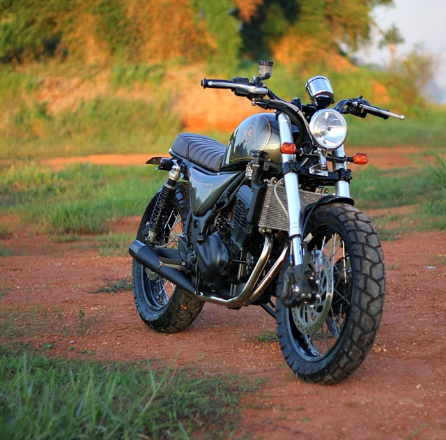 The bike I am building is not the gray scramble looking thing that folks have been posting.......I am building a Blue Collar Bobber Cafe' kit. I am not using their large front tire, front fender, bottom mount headlight or the overly large speedo assembly - and I am not sure what I am going to do about paint yet. It looks like this if you use everything in the kit.