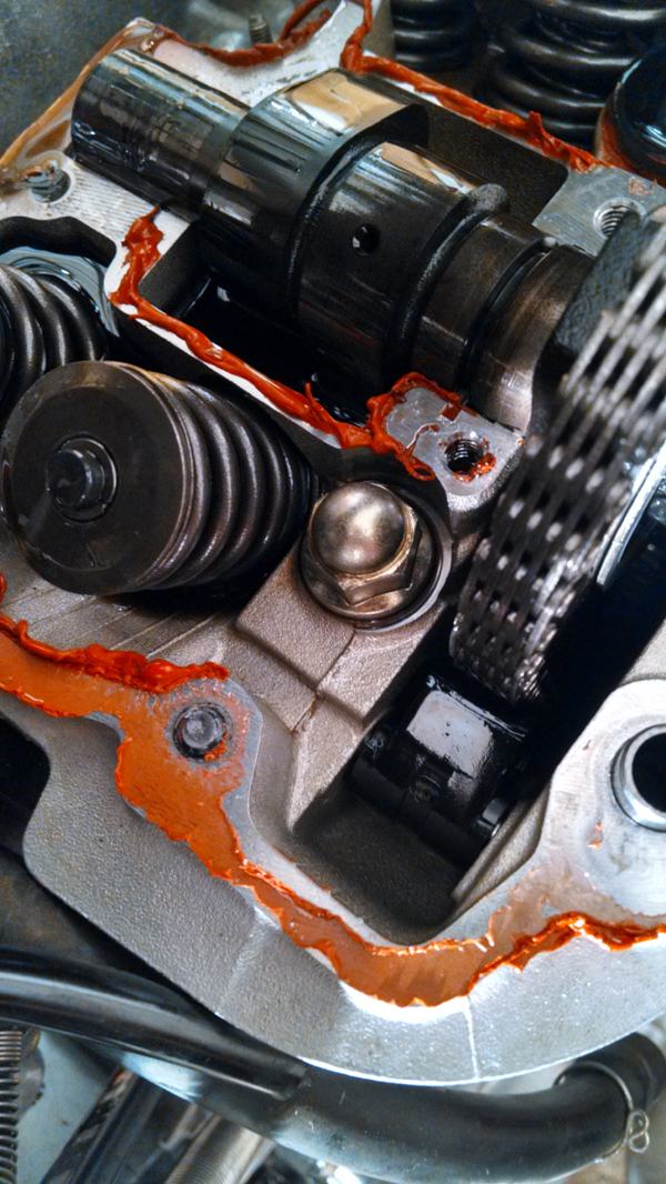 Be a little neater with your sealant.....you only need a thin coating that seals the joint....with almost nothing squeezing out. And don't put it where it has not been squashed out....there is nothing to be sealed along the cam. Why don't you use black or silver sealant so that it looks like a factory job.....nothing screams "repaired" more than orange sealer squeezing out the joints. You can take a rag soaked with solvent and clean whatever squeezes out of the joint...the sealing is at the joint surface - not by what oozes out the joint.