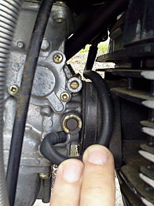 So, I installed a cheap JPCycles, shorty, slashcut muffler that is obnoxiously loud. I had the baffle professionally re-packed and the carb re-jetted and bike runs great with no backfiring which amazed me. A few days ago I put in a K&N filter in the stock airbox. Now I am getting some mild/sporadic backfires when decelerating. Decided I needed to work up the courage to drill a hole in my carburetor. Before I drill, I wanted to check with the experts because I believe one of the former owners may have already performed this mod. Please see the PhonePhoto below. I think what I am seeing is the head of a brass, standard screw and not the plug.