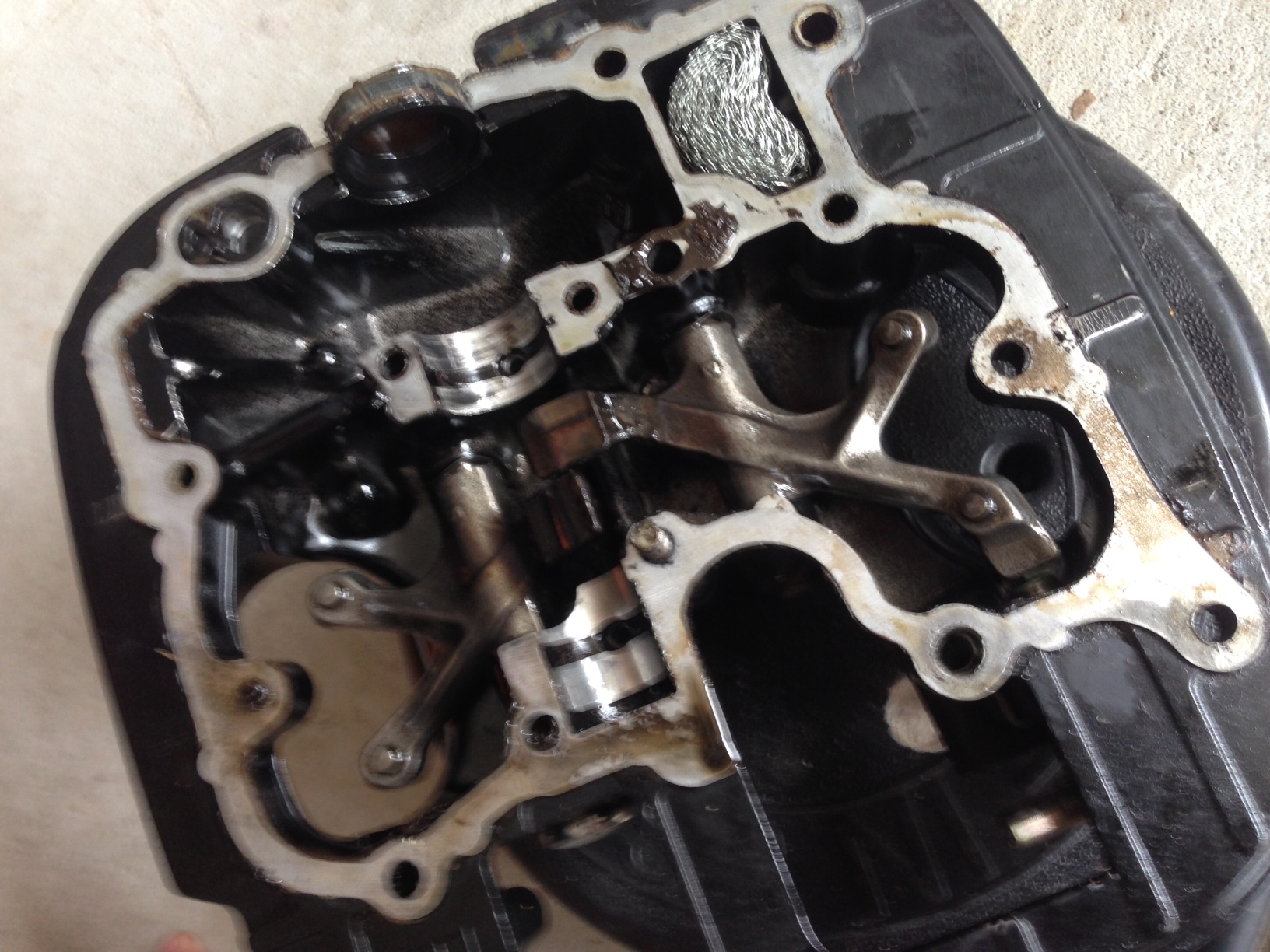 When I removed the cover I could see where the cam shaft is banging against the top of the cover. There are active metal shards on the top cover that haven't completely separated which you can see in the following pictures.