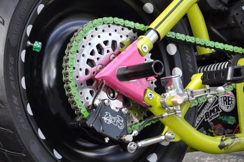 I can't see a foot peg. I'd like to see a dyno run. The sprocket/brake disk is cool,BUT,what do they cost? Ohh,no one cares. It's not a daily rider.