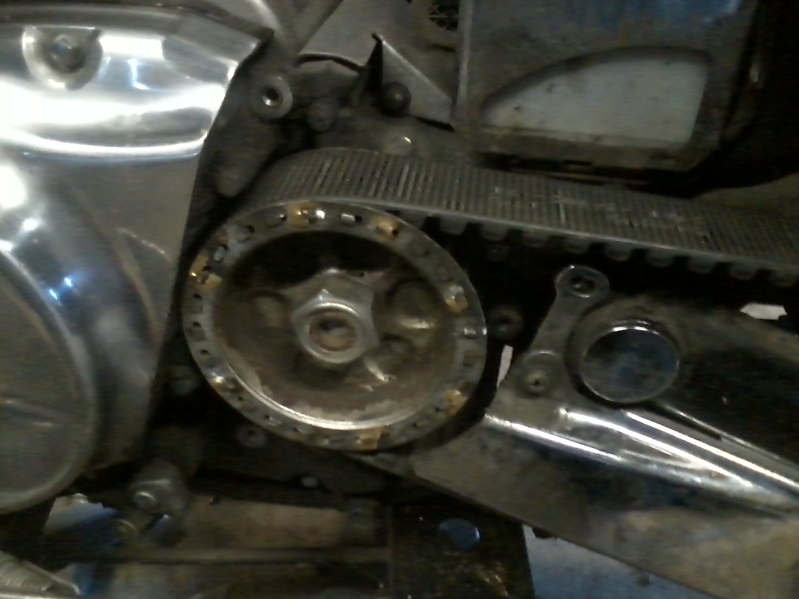 turns out a Kawasaki 454 pulley will fit the splines and add 2 teeth to the front drive.  The belt is barely long enough to make it work  Smiley.   Now Kawaski uses a different system to secure the pulley.  But its like my dad used to say "Where there's a will, There's a way".  So if ya have an engineering sprit about ya , you can make it fit.   A word of advice :  Kawasaki uses some really good steel and hardness it so much that tooled steel cutters won't touch it , but an angle-grinder will.  Wink  I use thread lock to secure the nut on mine.   I've found a Kawasaki (80-82) 750 belt drive rear sprocket(65 teeth) fits the belt but needs a lot of machining to make it work, Dave has mastered that one.  Smiley
