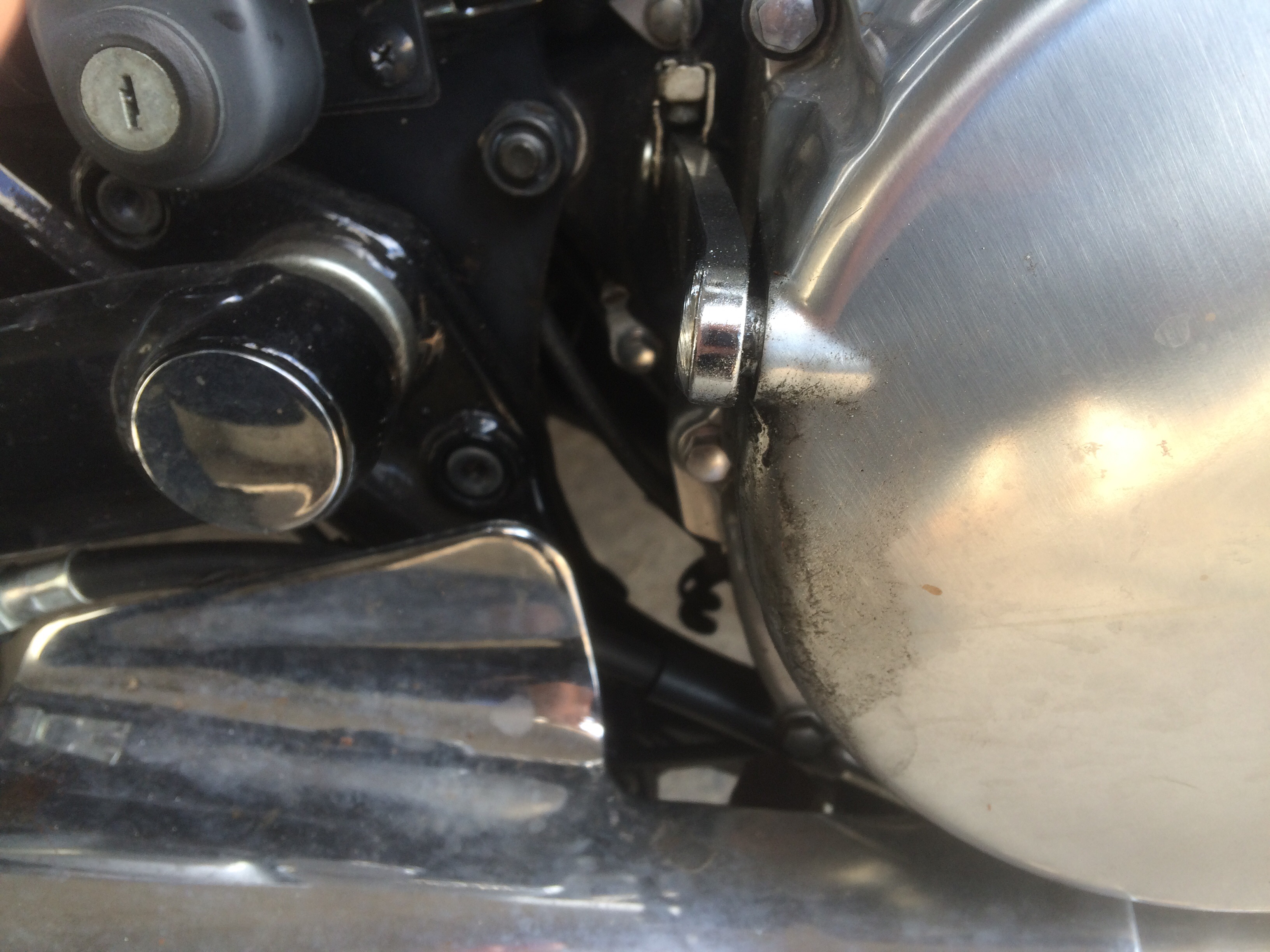 I can't really see what you are talking about, but mine oozed a little from where the clutch actuator shaft went through the case. The hardware store has the o-ring you need for about a quarter.. It's not even almost worth messing with until it's time to go in and check the cam chain, which is when you can slap a Verslavy in it and get the last miles out of that chain AND, because Verslagen has engineered a "Stop" into it, it won't allow the tensioner to spit its guts into the spinning gears and ruin your engine.