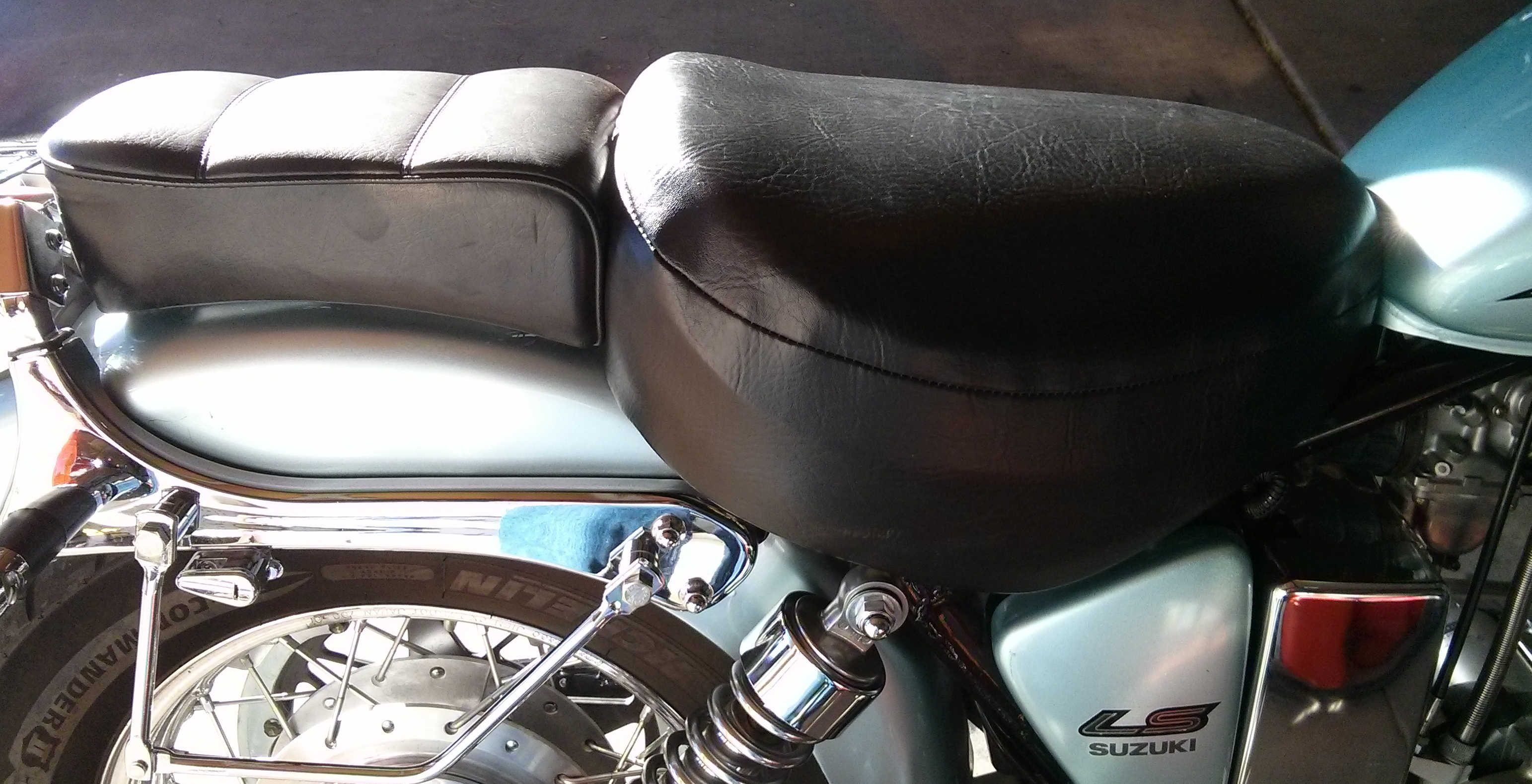 It looks like a stock seat with extra padding and a new cover on it. If you look closely, you can see the profile of the old seat sticking through the side panel of the seat cover. The original seat and possibly the original cover may be lurking underneath that big black ugly lump of a seat cover.