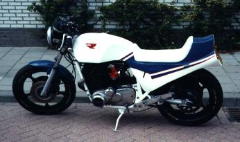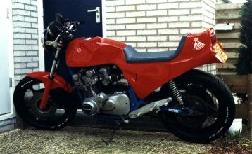 It's a '86 model with the 4 speed gearbox (I had the '91 before so at first I thought I was missing a gear). After searching a lot and seeing pictures I think the bike in my head would classify best as a Street Tracker. I do not care too much how it's called, I just build it the way I see it and I like it.