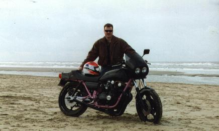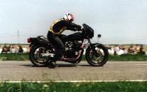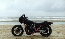 I bought it from him and started building my first street fighter. I put on an original tank and body panels, a GSX1100 swing arm, rebuild the motor with a Wiseco 844 kit and put on a Harris exhaust (they are awesome!)
