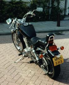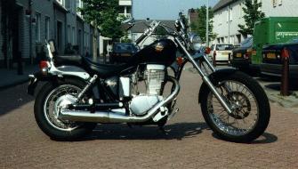 When I started working in '91 I bought my first (and only) new bike, a Suzuki Savage. I drove all my bikes all year round so also this one. I loved the low end power but along the way I started to realize that a chopper doesn't suit my driving style..... how I knew? The controls and exhaust were all grinded away from flat cornering...