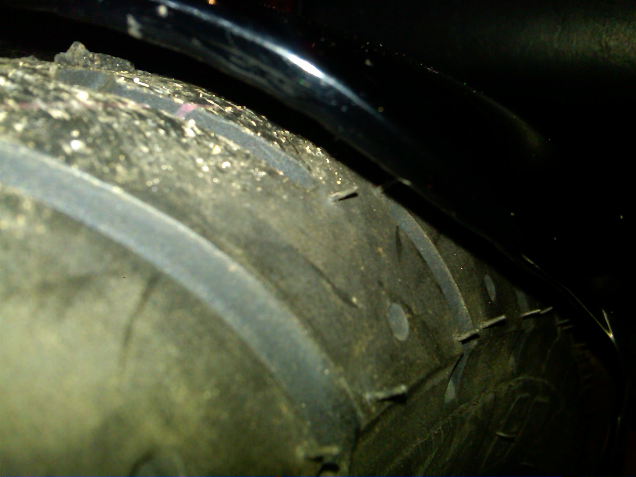 It is sunny and 58 degrees here today, with winds +/-15mph. I couldn't take it any longer so I rode her back to work after lunch. It's about 8 miles at 45mph-55mph. She seemed to ride just fine and upon arriving, an initial inspection reveals no scrubbing (on the front) or other signs of concern.