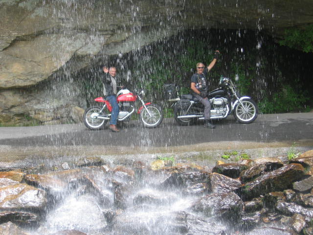 I just happened to see this picture this morning....and it shows that the Savage and RYCA Cafe' conversion is not a long bike. This is my bike behind MMRanch's 883 Sportster on the Dragon ride last year. You can see how much longer the Sportster is. When the longer shocks are installed it makes the front fork angle a bit more vertical, and pulls the front wheel back slightly....so it is just a tad shorter than a stock Savage.