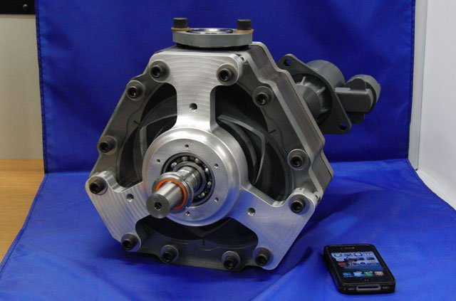 One rotor, acting like a triple rotor wankel in effectiveness, with no ugly seal issues because the NON-ROTATING seals are part of the main housing and can be powerful, effective seals.