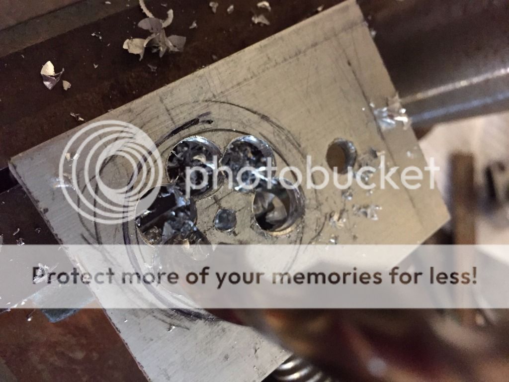 The first step is to trace the shape onto a bracket (the bracket is made of 0.125 2024, 2.00 x 1.50). I also wanted to trace the shape of the switch housing itself to ensure I left enough room for full coverage. I than drilled a centering hole.