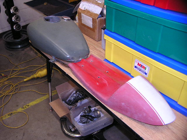 paint was red/white before it was rattle canned green. seat is stripped of the green. tank next.