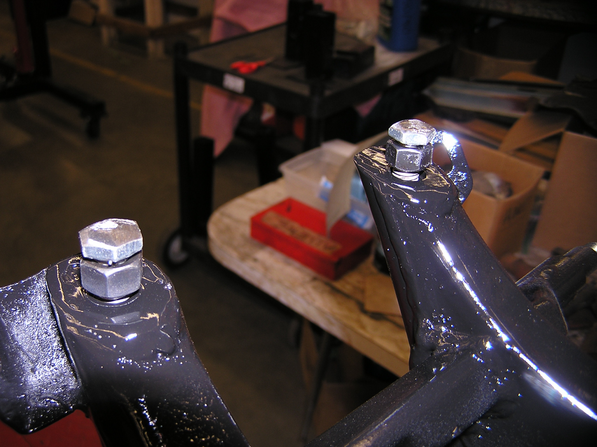 The rubbers were dug out, to slip over the shaft nuts, which limited some of the motion. this should give the designed value of travel. NOW there is ~2" of shaft exposed. before the dig, there was maybe 1 1/2 or so....