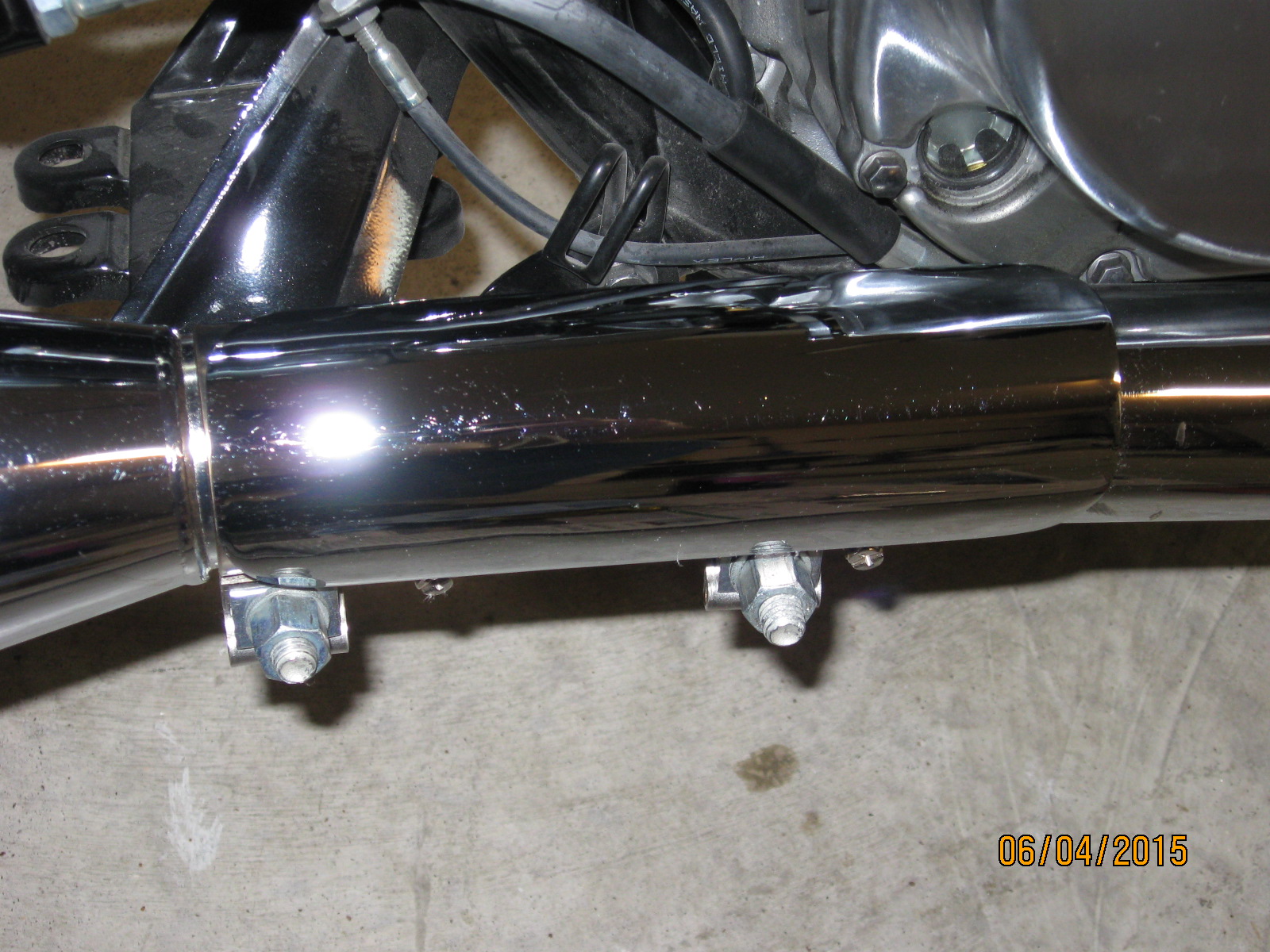 Tomorrow I am going to loosen up the Harley clamps and turn them back about 90 degrees and at the same time rotate the heat shield clamps so  the the fasteners are not showing.