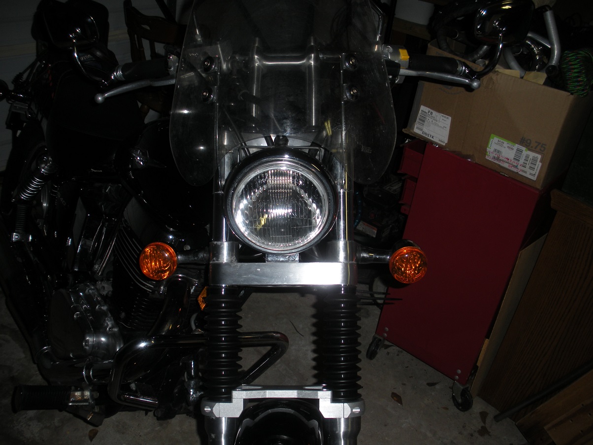 Mich Cdr II 140/90R & 100/90F, raised seat, windscreen, clubman bars, T-Kat brace, Raptor, HD 64707-08, thumb decomp,