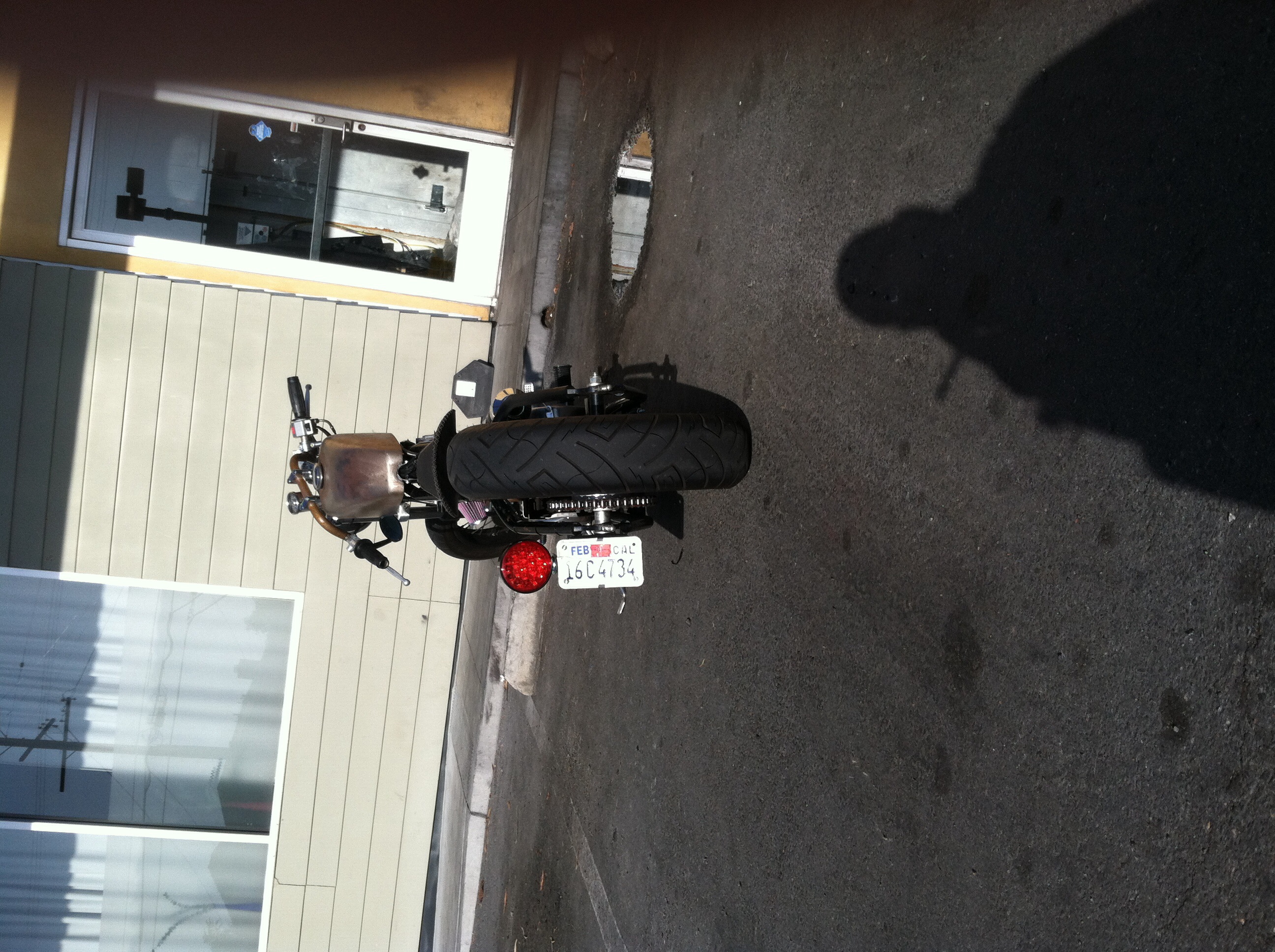 I've also had a MA inspection guy tell me that the plate needs to be mounted at or behind the rear axle. The same guy told me that if we got it as close as we could he'd let it go so obviously it depends on who you get. Certainly helps to know an inspection guy. On some bikes there isn't anything but wheel behind the axle and I see people on the road breaking that rule daily. We are also required to have turn signals and brakes front and rear. Most of us that aren't crazy like to have those things but if you are customizing a bike it's a lot to have to get straight. If you start to figure in turn signals along with the plate and brake light and start to place things out of center the result is going to be a bike that looks really unsymmetrical and strange from behind. Try building a stripped down bobber and making it legal in MA. Fun.
