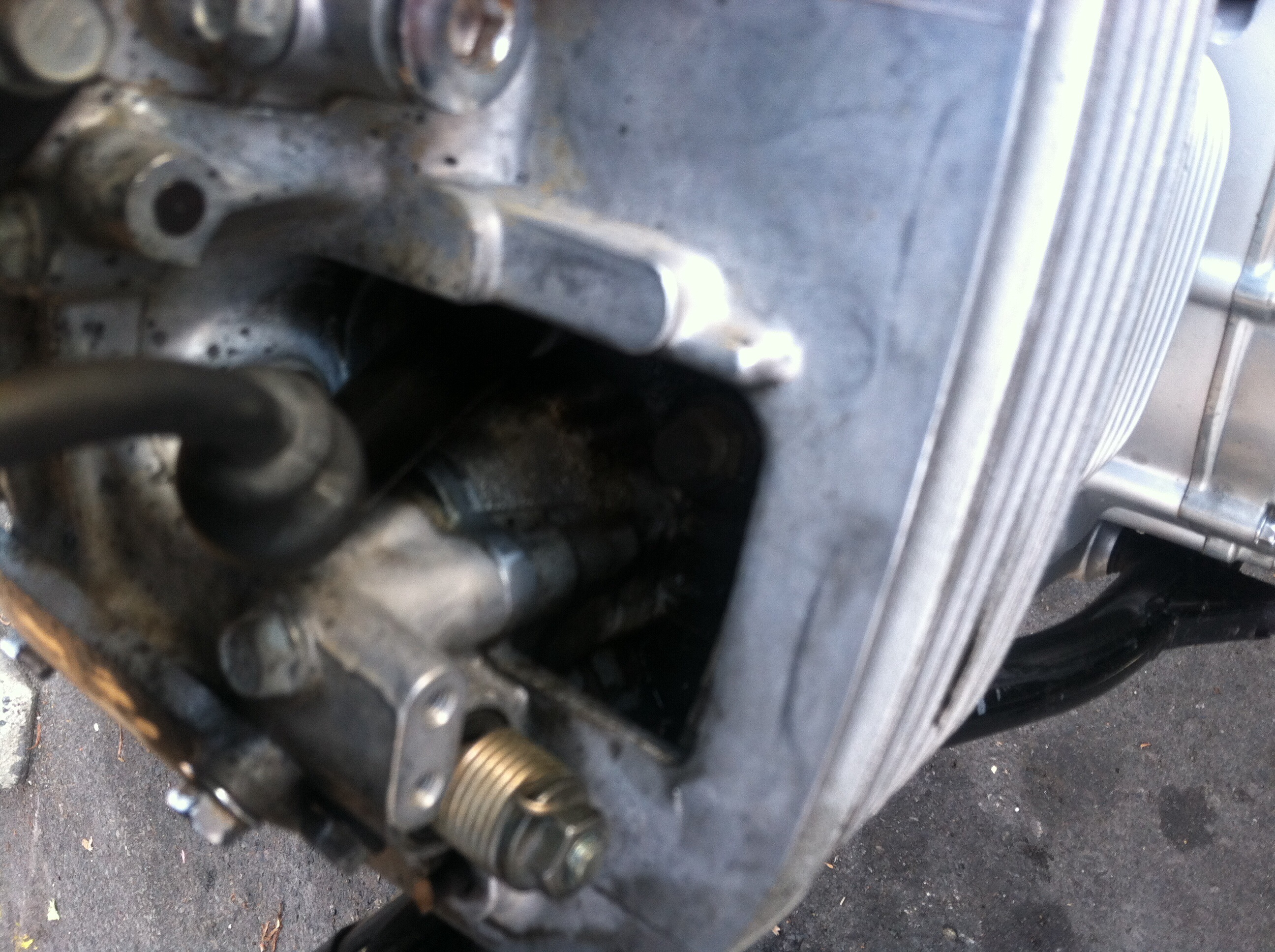 I topped off the oil the other day after searching about miss shifts between 4th and 5th. I may very well have "over filled" it and I wonder if it's possible that it's leaking up there because of too much oil. It's always been dirty in there but after riding to work today it's the 1st time I've noticed it being wet.