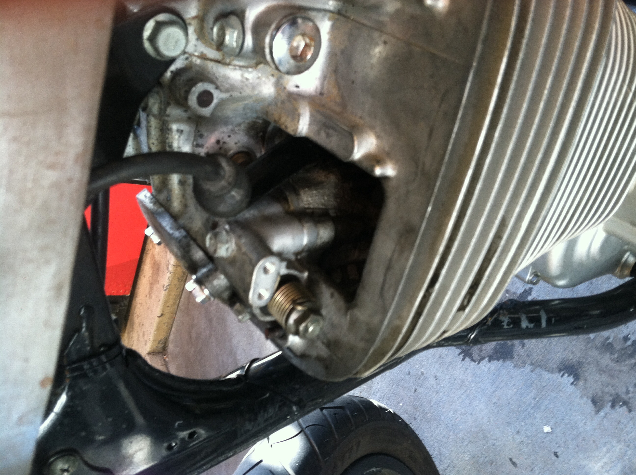 I wondered the same thing about that reversed bolt. That's how it was when I bought the bike. I watched the RYCA videos on both cafe and bobber builds and they just cut the bolt and did nothing more.