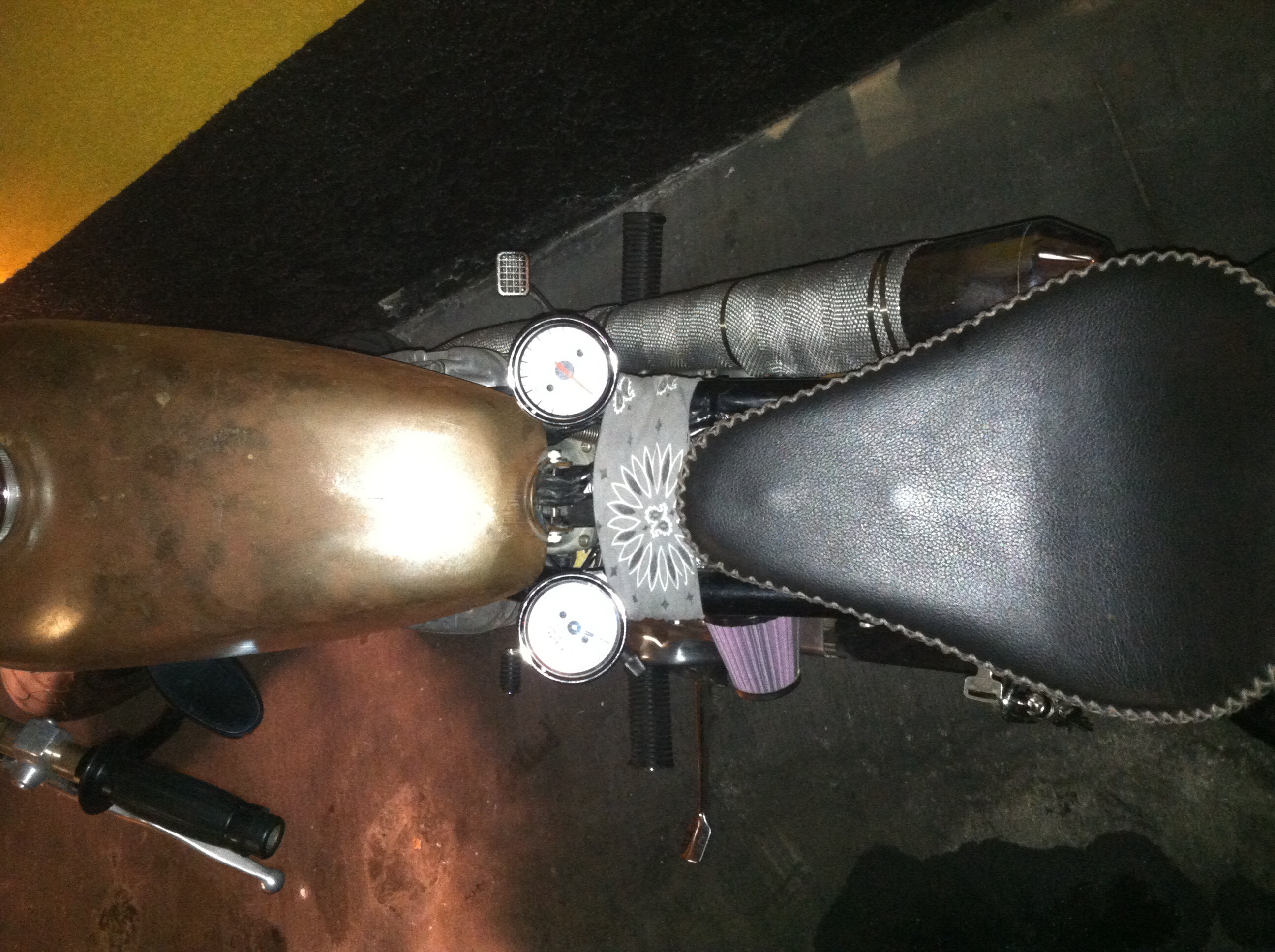 May not seem very useful where they are mounted but I wanted a clean triple tree and nothing above the bars. Surprisingly they are both in my extended field of view. To be honest I rarely even look at the speedo unless I see the fuzz and feel I'm going to fast. The tach was more for idle speed and to get an idea of what RPMs I'm at while cruising in specific gears. All I all I'm super happy.