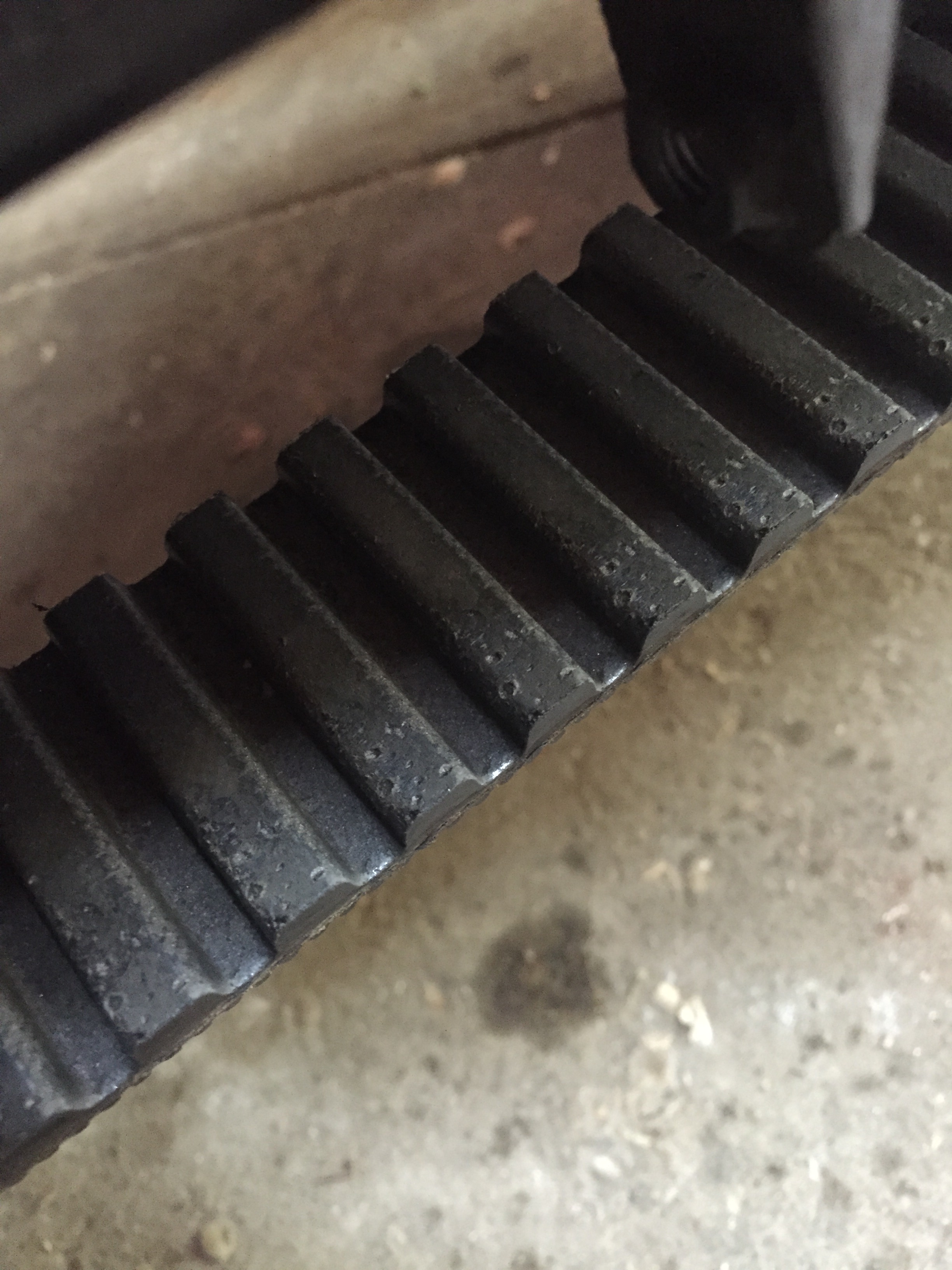 Here is a little wear on the belt from 3 hrs or tinkering with the tension.