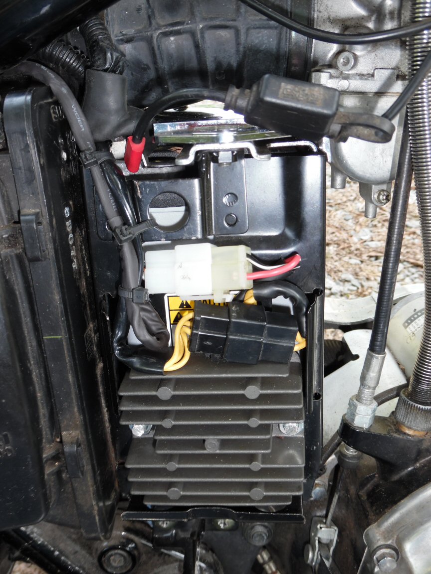 It's really good to see your documenting and sharing everything with us.  I share Dave's concern about heat with the regulator rectifier mounted inside the toolkit area.  I understand that you've got the aluminum plate back there to dissipate heat, but I'm sure that isn't going to be enough even with the vent you're proposing to install.  I have an idea though.  You could install a micro computer fan in there and with the vent you ought to be in good shape.