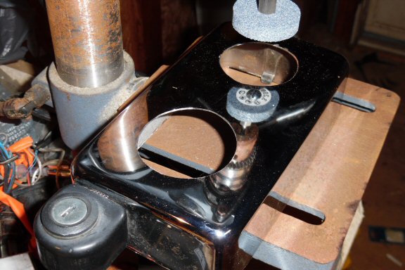Rough cut two 2" holes and then cleaned them up with a mini grinding stone...