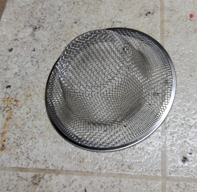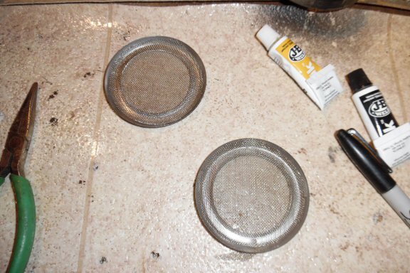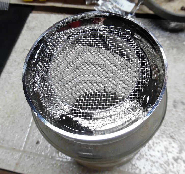 Screen is held in with JB Weld...then the hardware goes through it too, so it seems pretty strong. Screen came from a Walmart sink drain screen