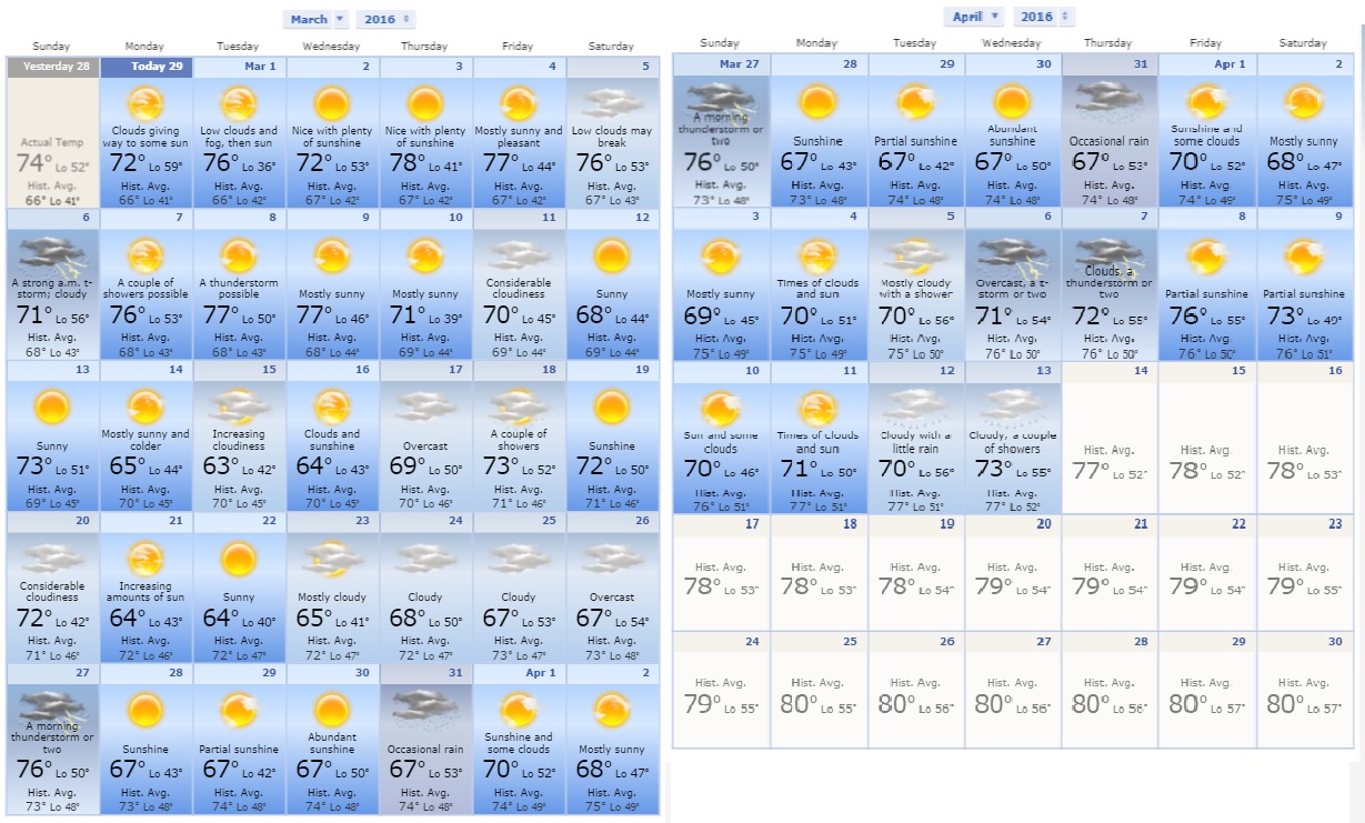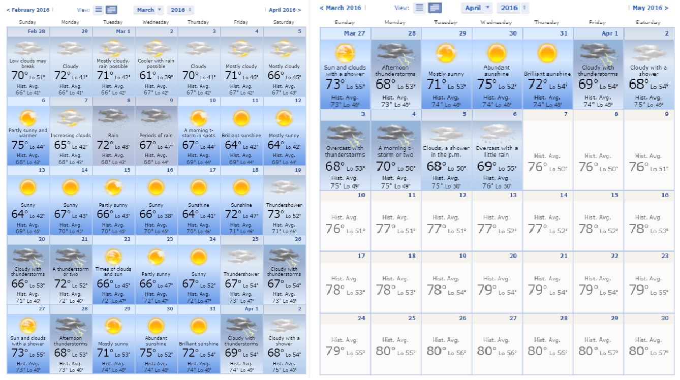 Here's the accuweather for march/april...