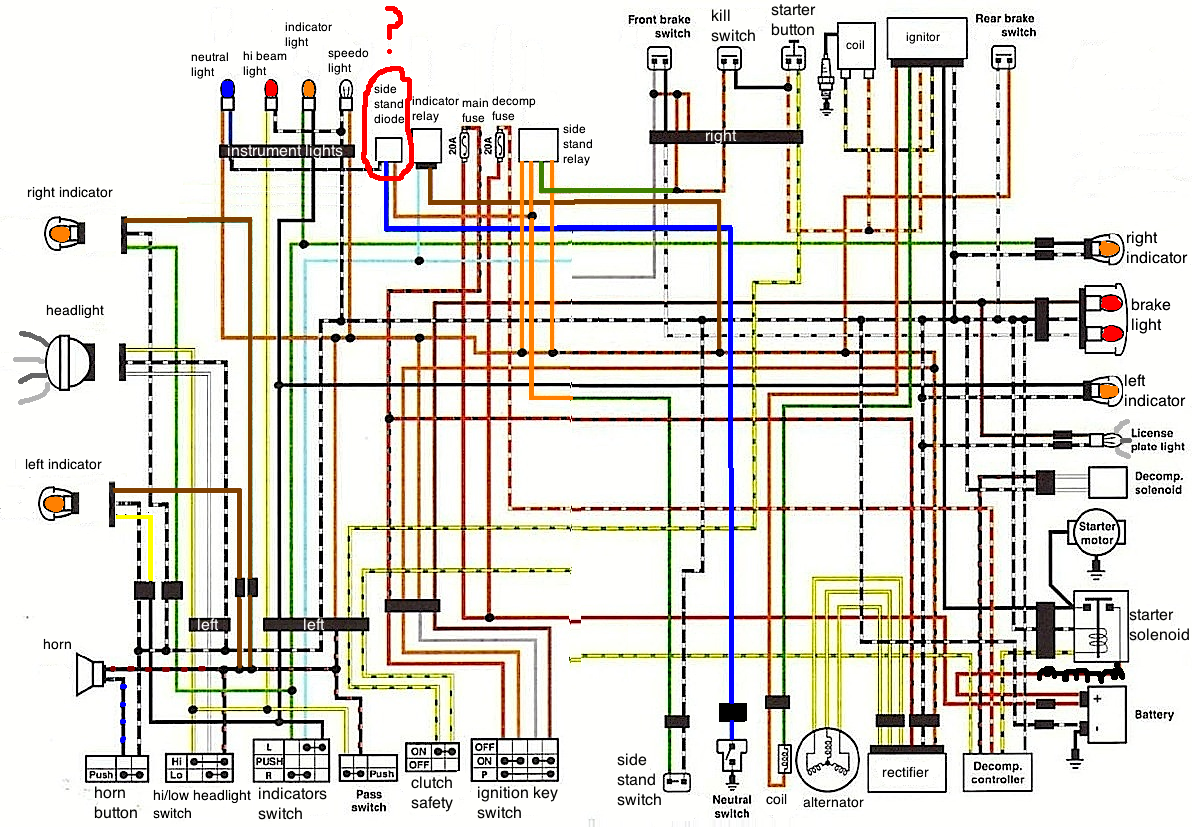 I'm going through this wiring diagram and making sure I am connecting each part again. Still can't find the side stand diode?