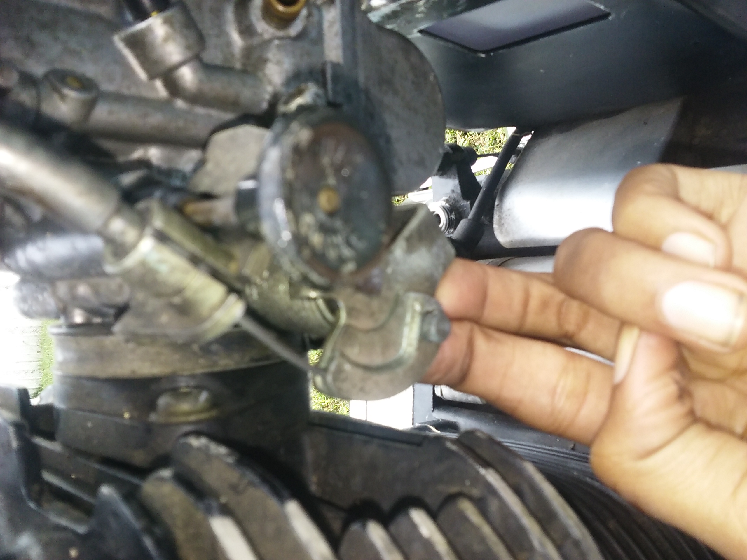 Throttle cable clip? Am i tripping or is there nothing there to remove? Should i be able to pull it up and out or should i be removing the piece just below the choke? Where my fibgers are located in the pic