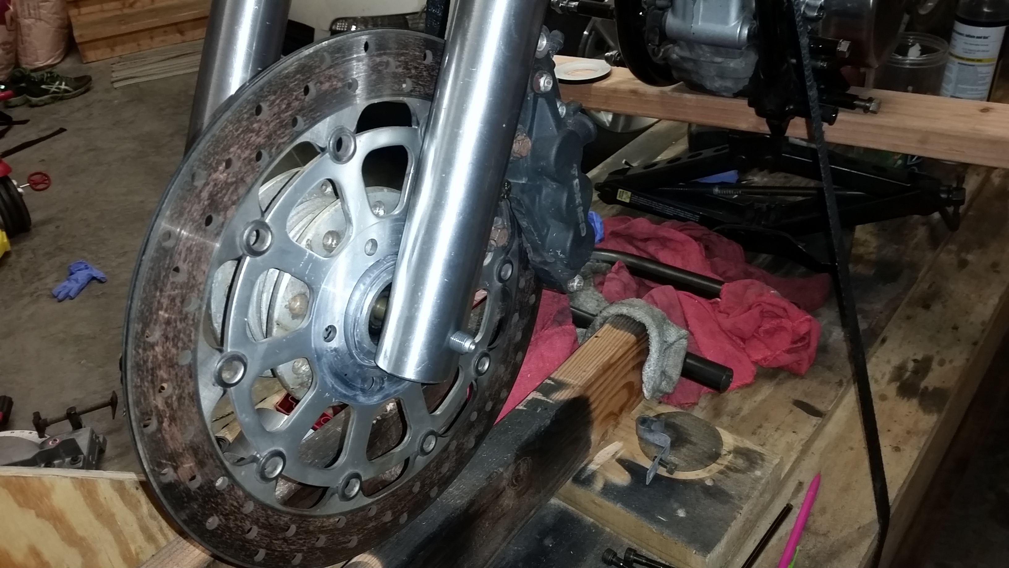 He must have used a complete different front end then, or at least forks and wheel. That's probably overkill, honestly a 310mm single rotor is probably overkill but it sure looks neat!