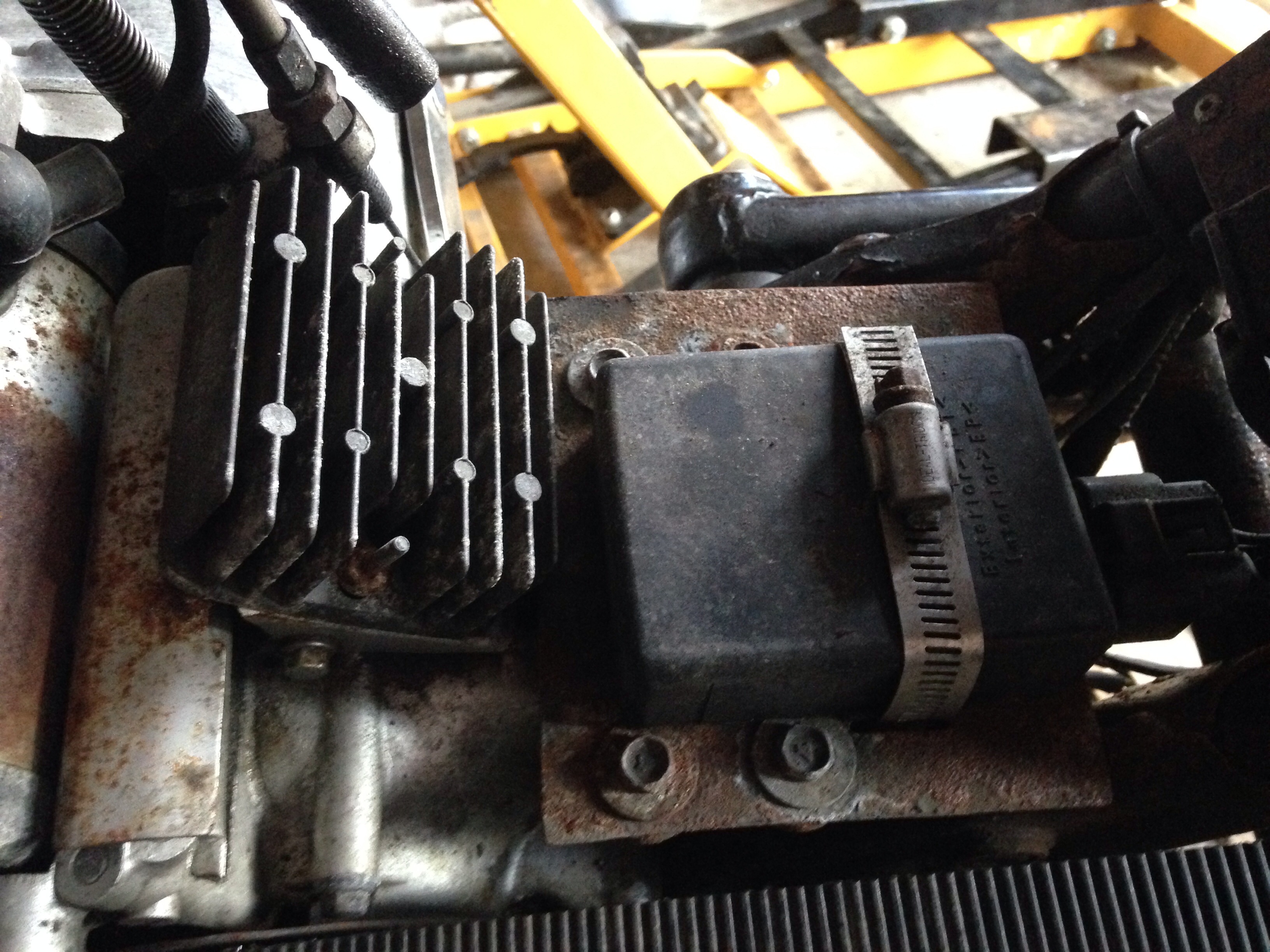 In the top photo you have the rectifier (left) and ignition box (right).
