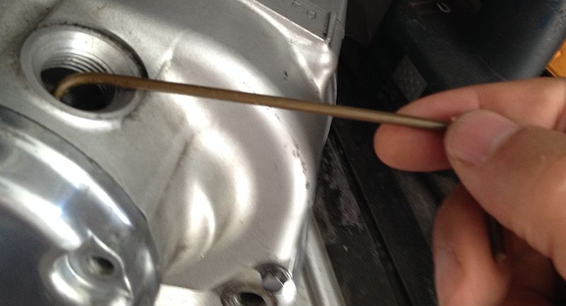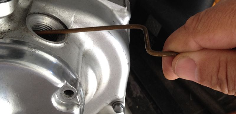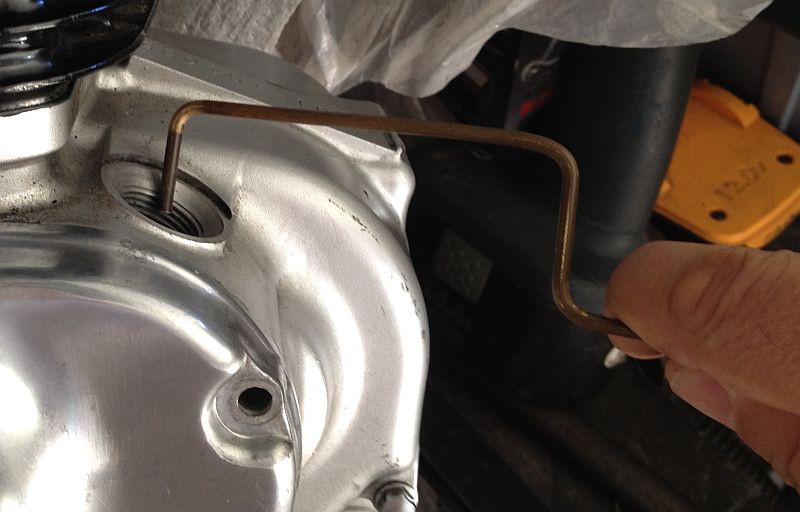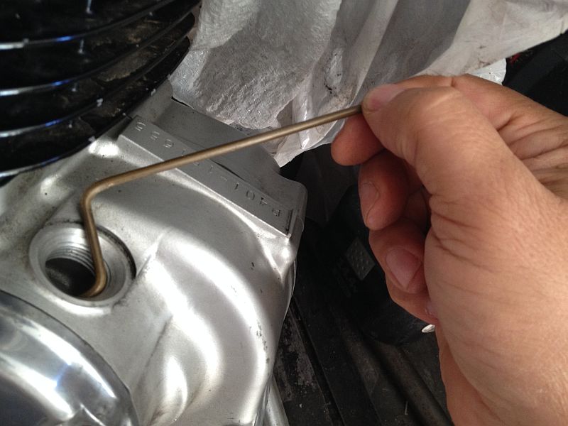 the middle of the S should hit the wall visible thru the oil filler port.