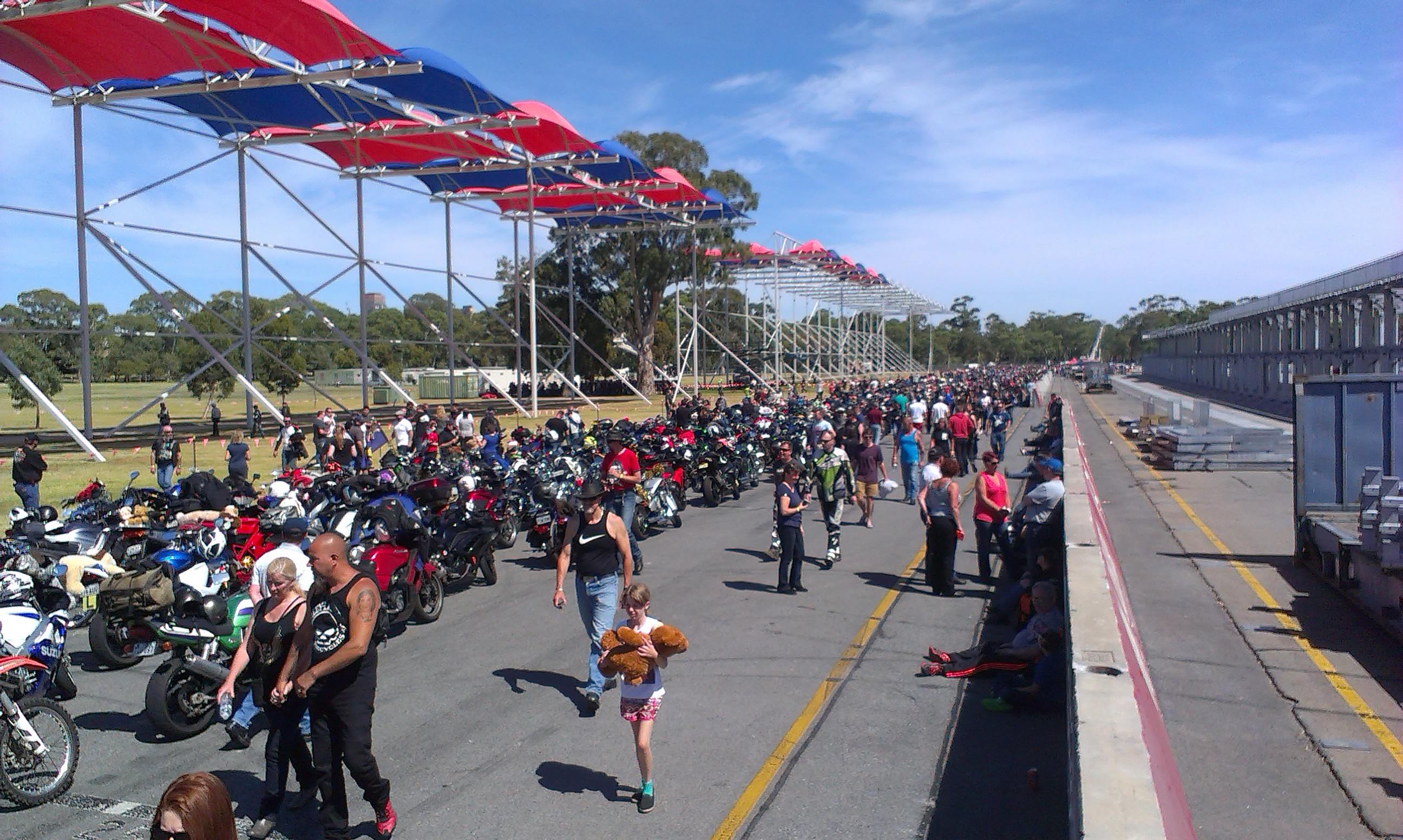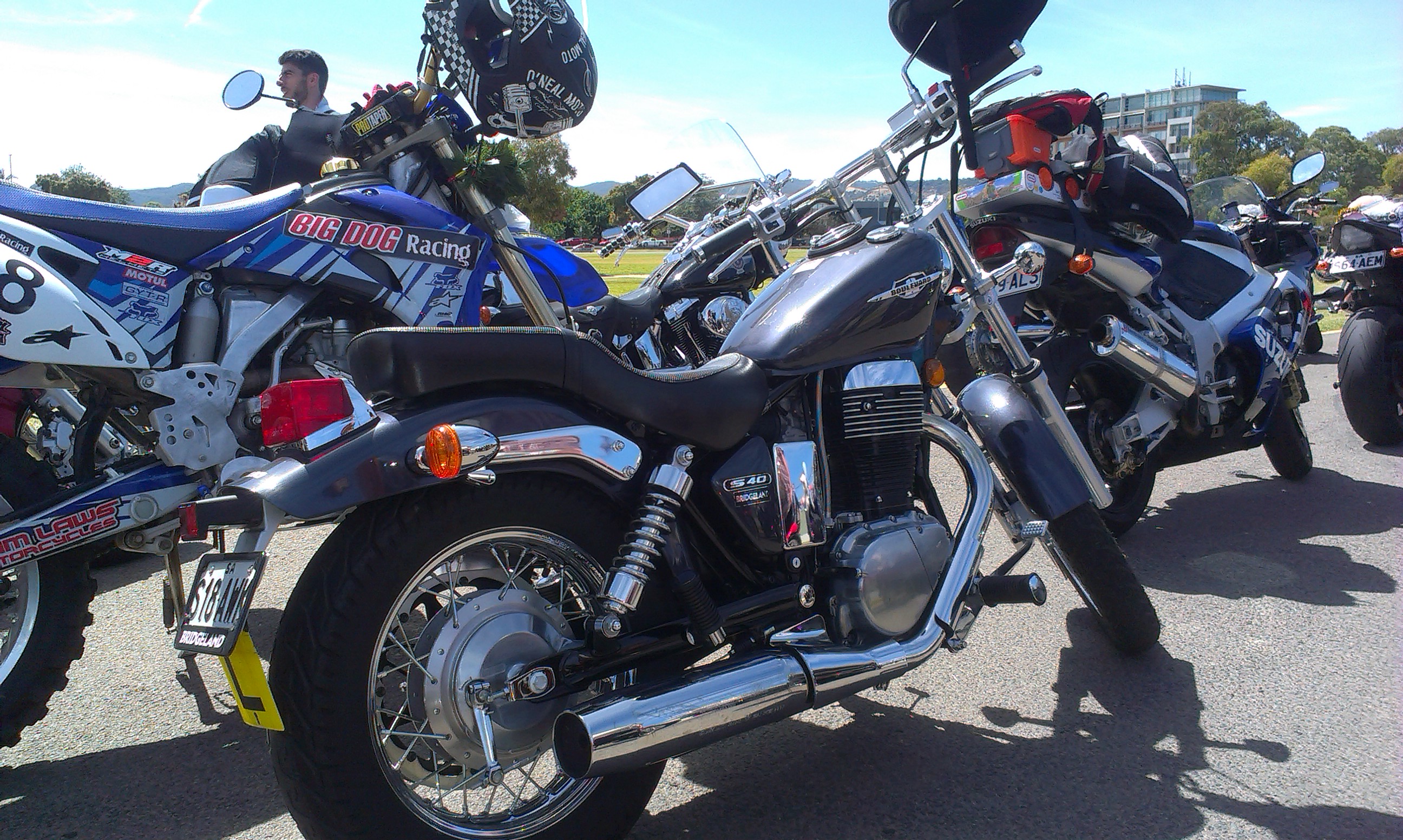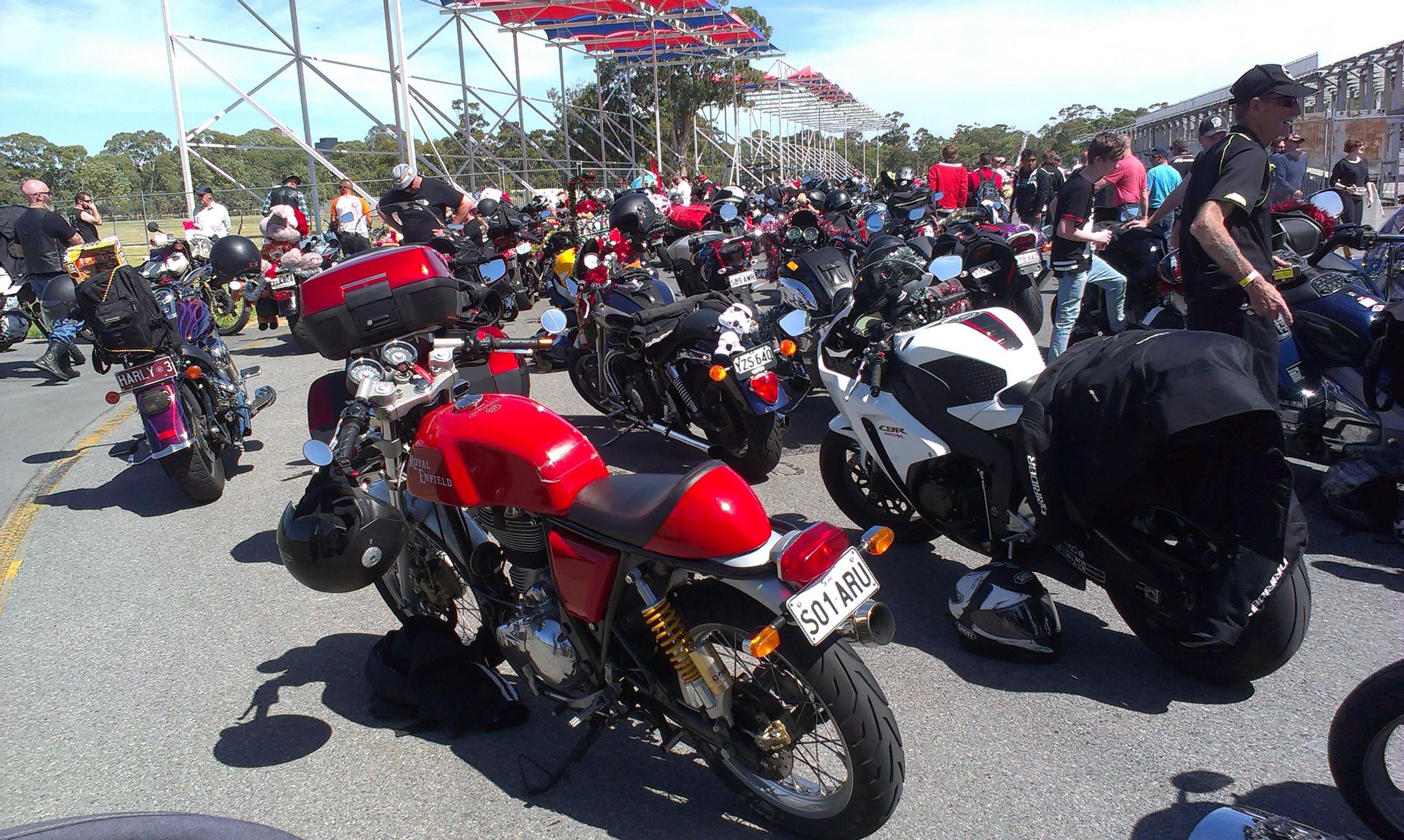Was the Adelaide, South Australia toy run today. I think it's the 37th year. About 6000 bikes turned up for the ride. I searched the multitude of cruisers in the lineup and finally I found a Savage. A brand new one with learner plates. didn't see the owner though. I left mine at home and took my Enfield cafe racer. Was great to see so many crew out for the ride. I noticed a lot of Japanese sport bikes with embarrassingly wide chicken strips, but a few had rear tyres flayed to the edges. Impressive was the 600 Suzuki motard with shredded front and back bags. Nice work. I had a nice long ride home through the hills.