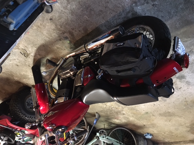The bag mounts I love now. Those are stock suzuki bag mounts but I had them powder coated when I had the rims done. Now rather than being bright in your face chrome they just fade away and you don't even see them half the time.