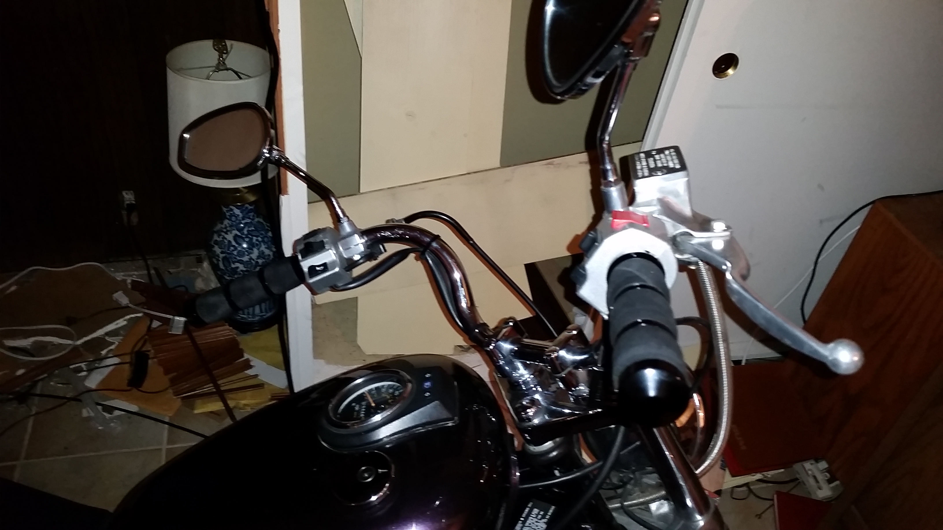 Now, my plan so far is to swap the drag bars out for the buckhorn (if you have a bar to sell, let me know!) but I am pretty positive that I will need to extend cables/wires/hose. I also want to get lower risers that do not have that bend in them.