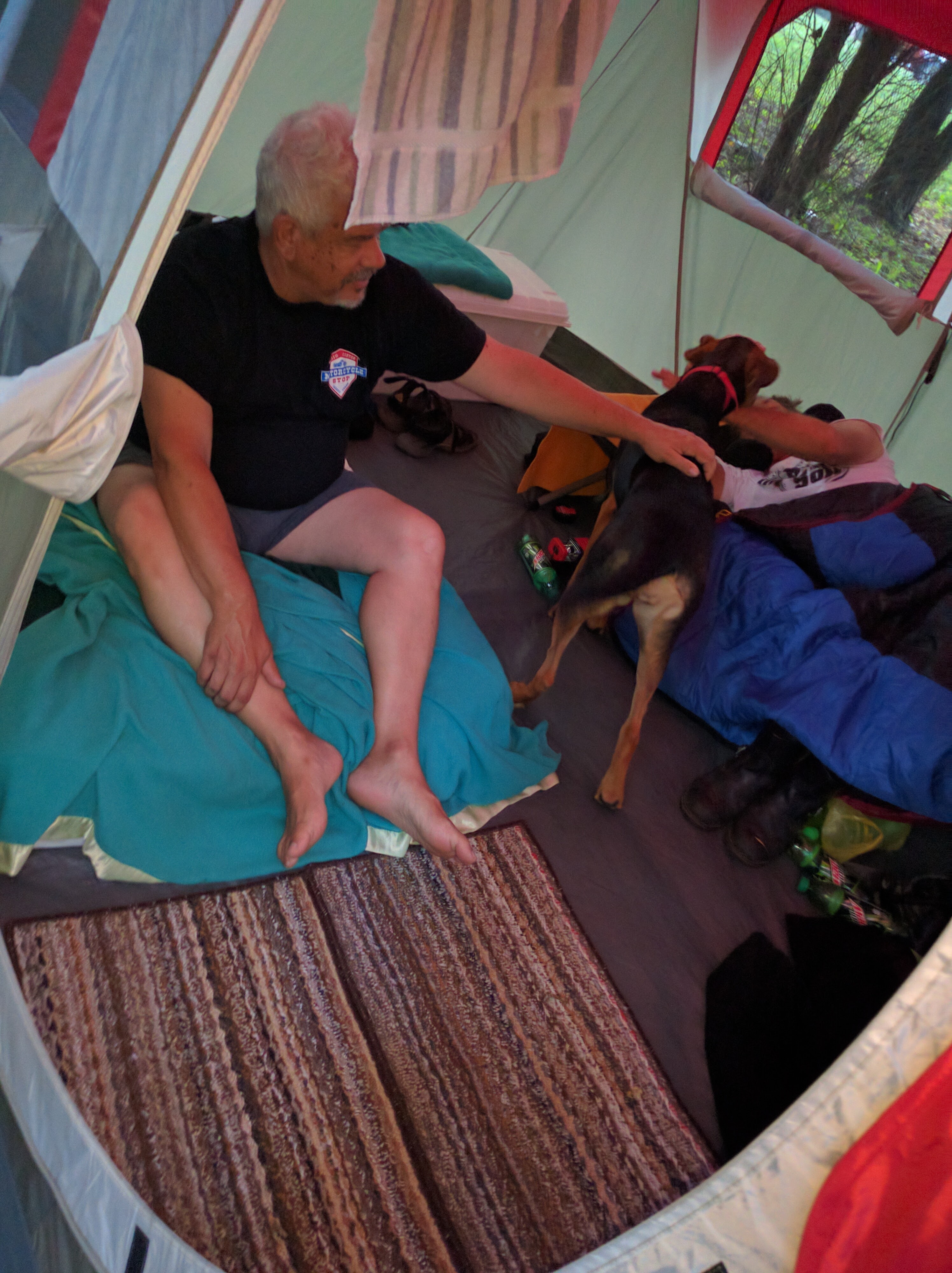 First we had to show Lilly how to open the door to the tent, after that it was all natural as Lilly loved MM's ear a bunch, he tasted so good.