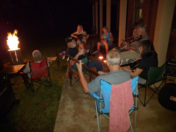 MMRanch and Oldfeller cleaned the fish on Thursday evening, and the fish were soaked in brine solution and that was changed once or twice.  MM had a batter recipe, and he and Oldfeller cooked up the fish, and my wife made the hush puppies.  It was incredible how good the Catfish tasted...I have never been a big fan of catfish as it tastes a little fish....this catfish was incredible and tasted much like Grouper or some other ocean fish - not like something out of a pond!  After eating we lit a fire a sat on the porch, and my wife and I played music with our musical friends that also came for the fish fry.
