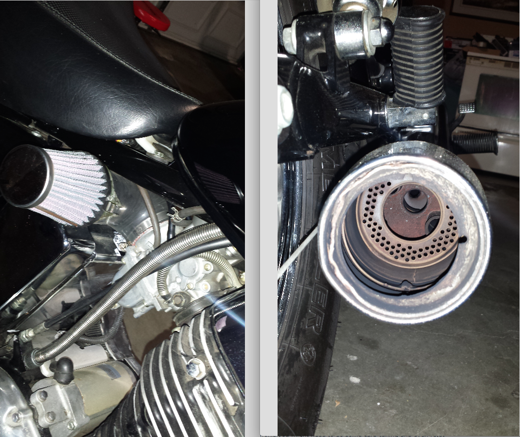 Here are pictures of what I have to work with. In the coming weeks I'm going to switch this muffler with a Harley Soft Tail muffler #65842-07 very similar to the Dyna.