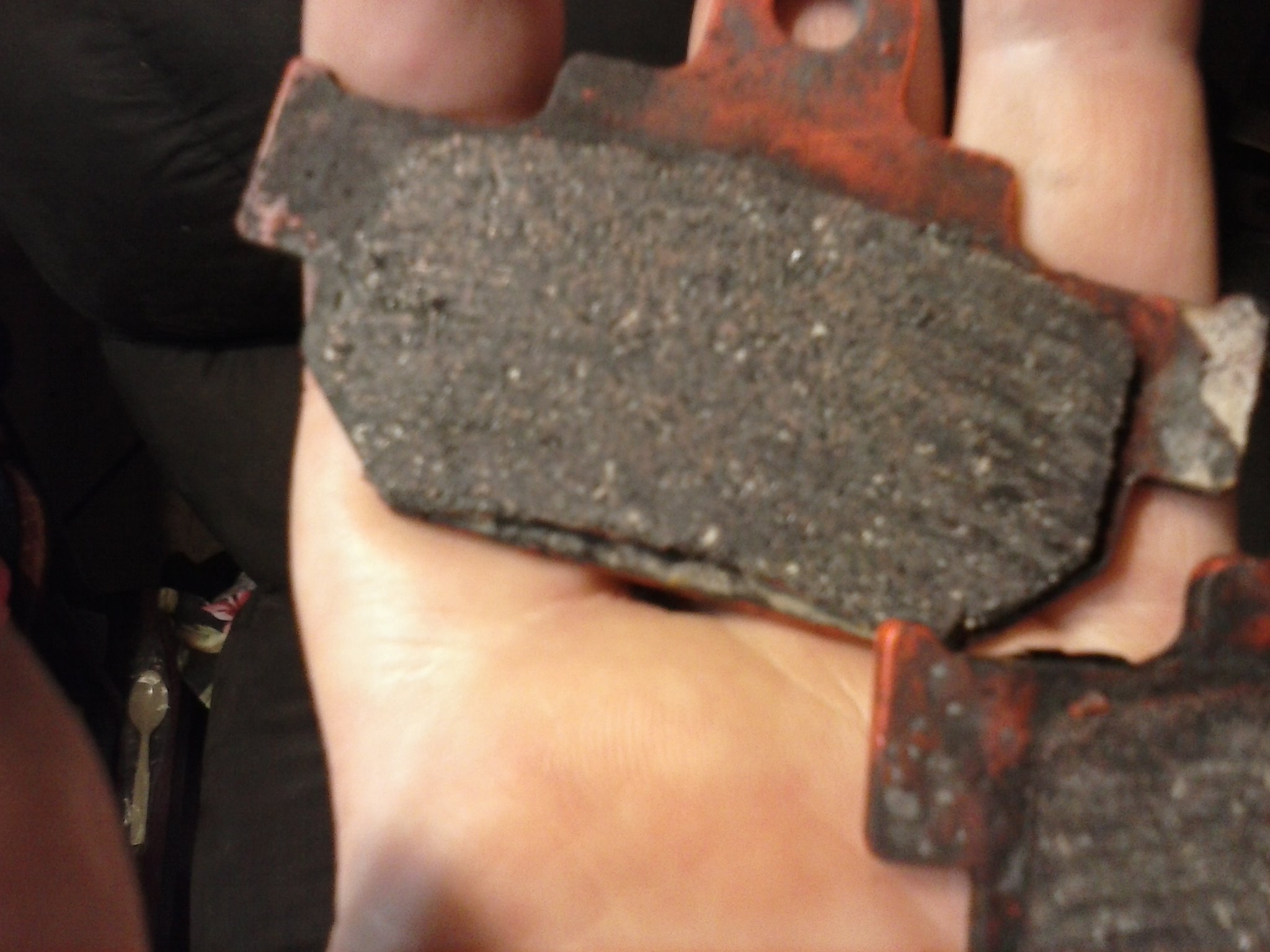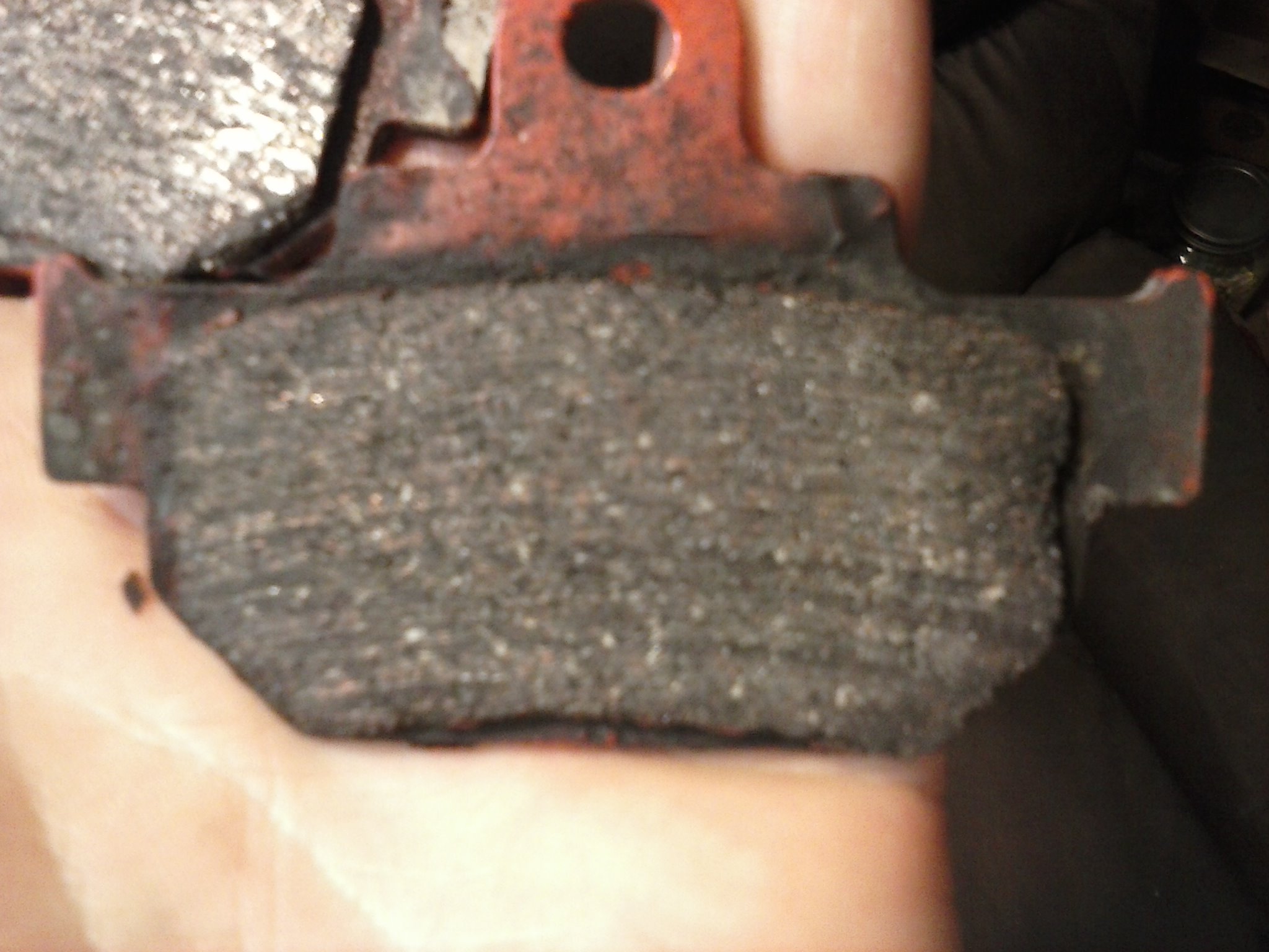 Hey Cheapnewbe24, looks like you had sintered or semi-metallic pads previously.