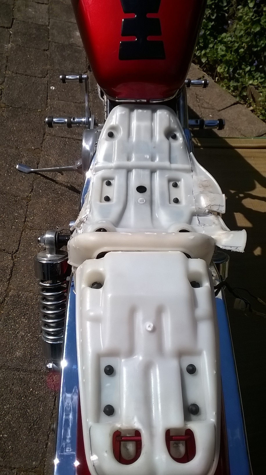 you can ignore the mod to the front of the seat as that was only needed due to the new tank. The rear mod was to cut down the profile of the seat. I used the stock cover. You don't have to do the full mod that I did where I even modded the pan. I did that only because I was very picky and wanted an exact look.