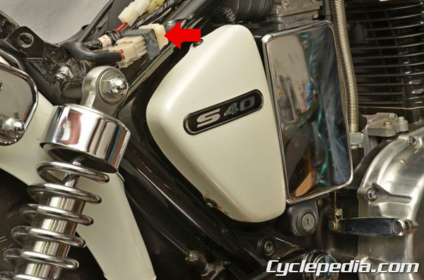Step 2: Remove Seat and locate white fuse box on muffler side.
