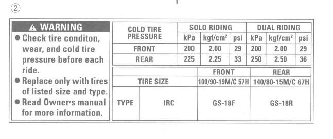 from the Suzuki service manual for STOCK tires