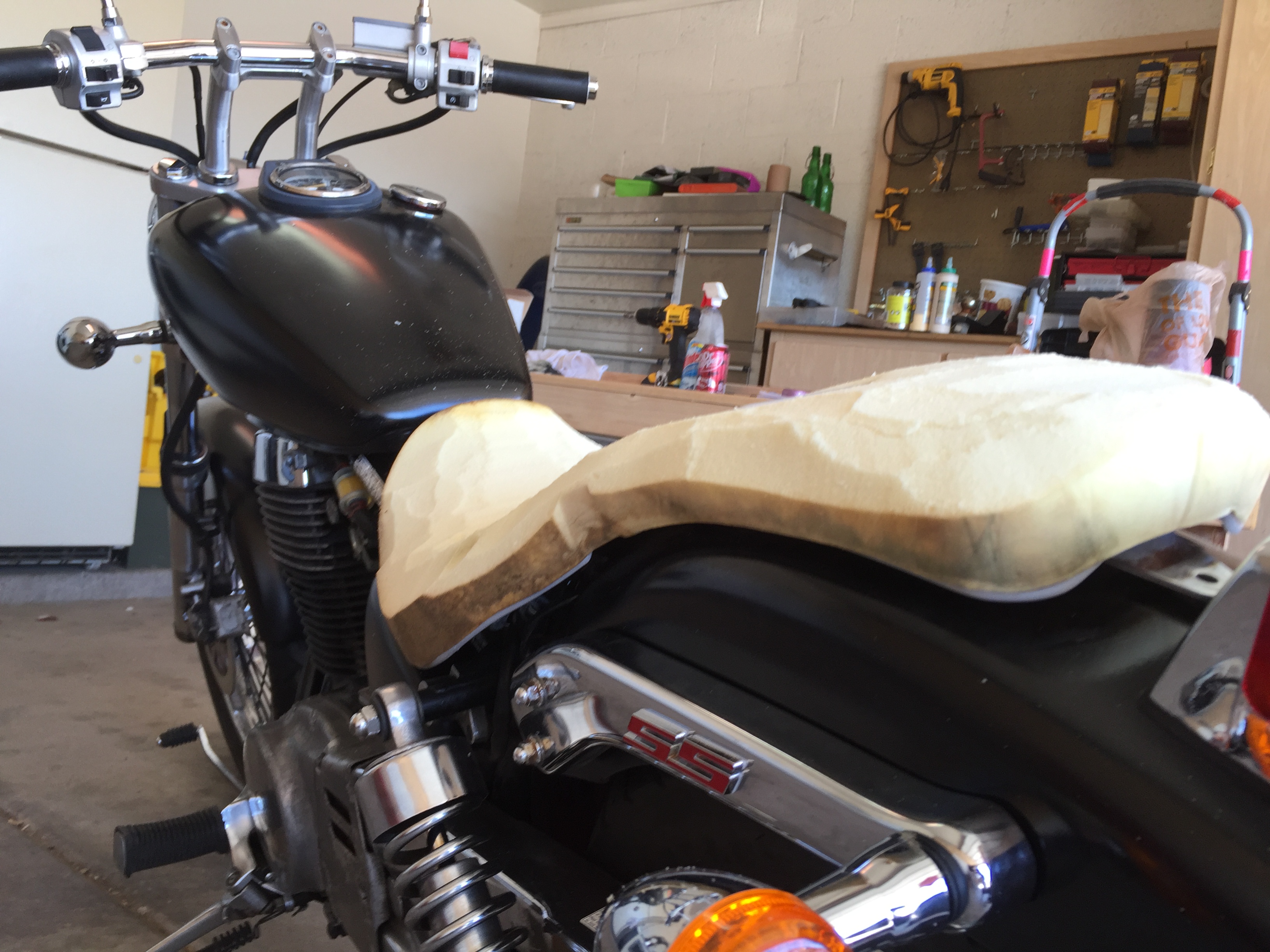 I hate our seat, it's no secret. I've been looking for a daytripper style seat since I bought the bike. I've even tried to find a used beat-up seat here in the MarketPlace to "practice" on, but no luck.