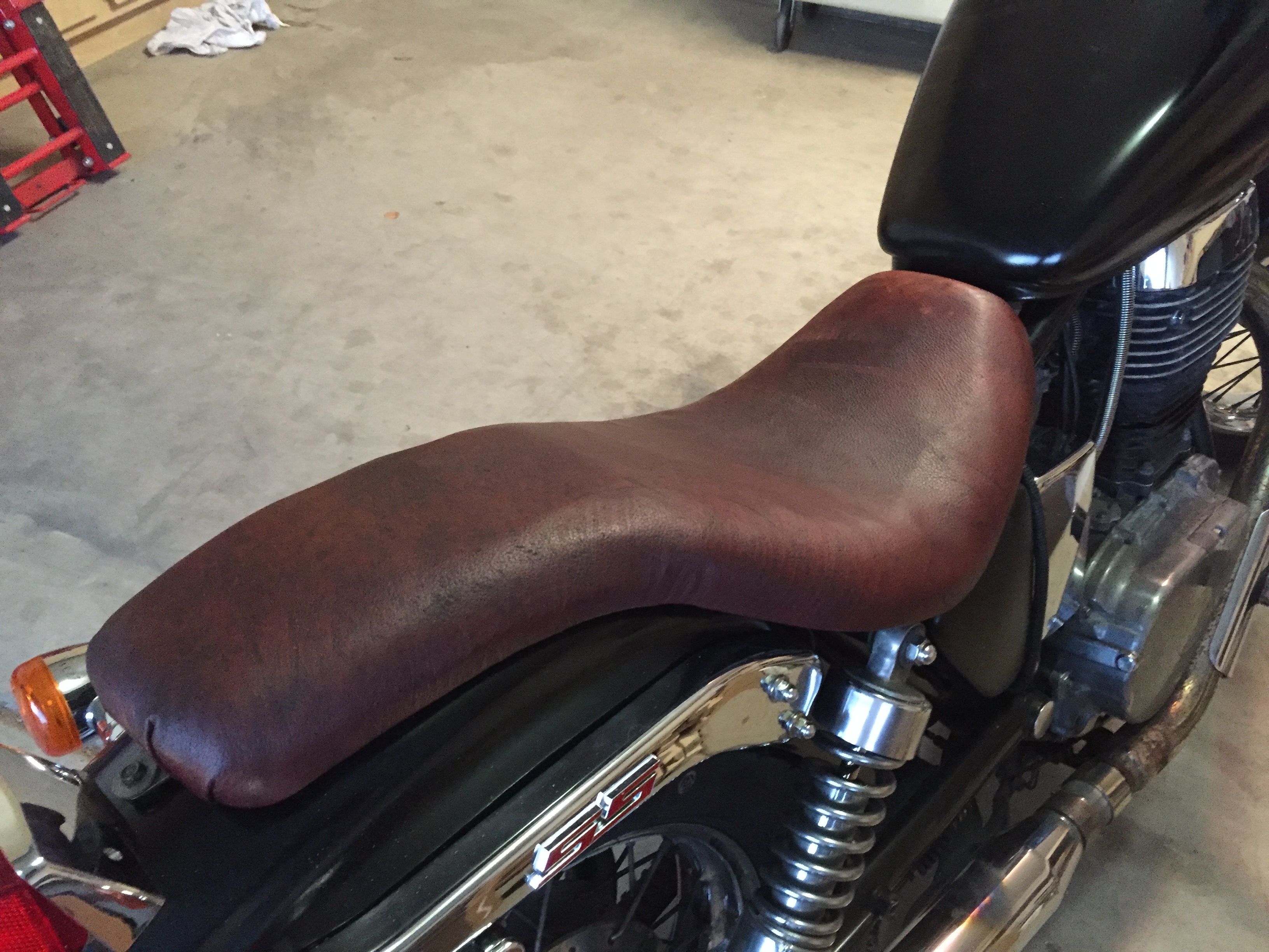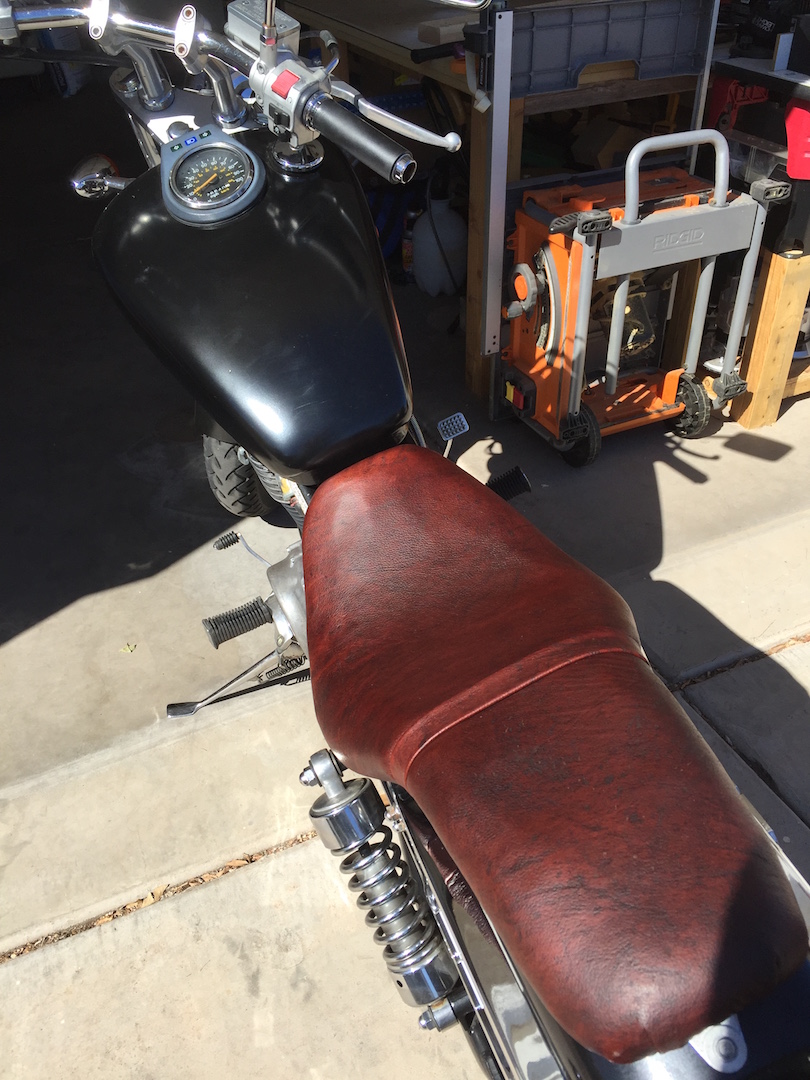So, I got some kangaroo leather from Australia and decide to have my buddy redo the seat. He can't do it. So now I have decided to redo it myself. After some exhaustive research here on the forums and other resources I did it.