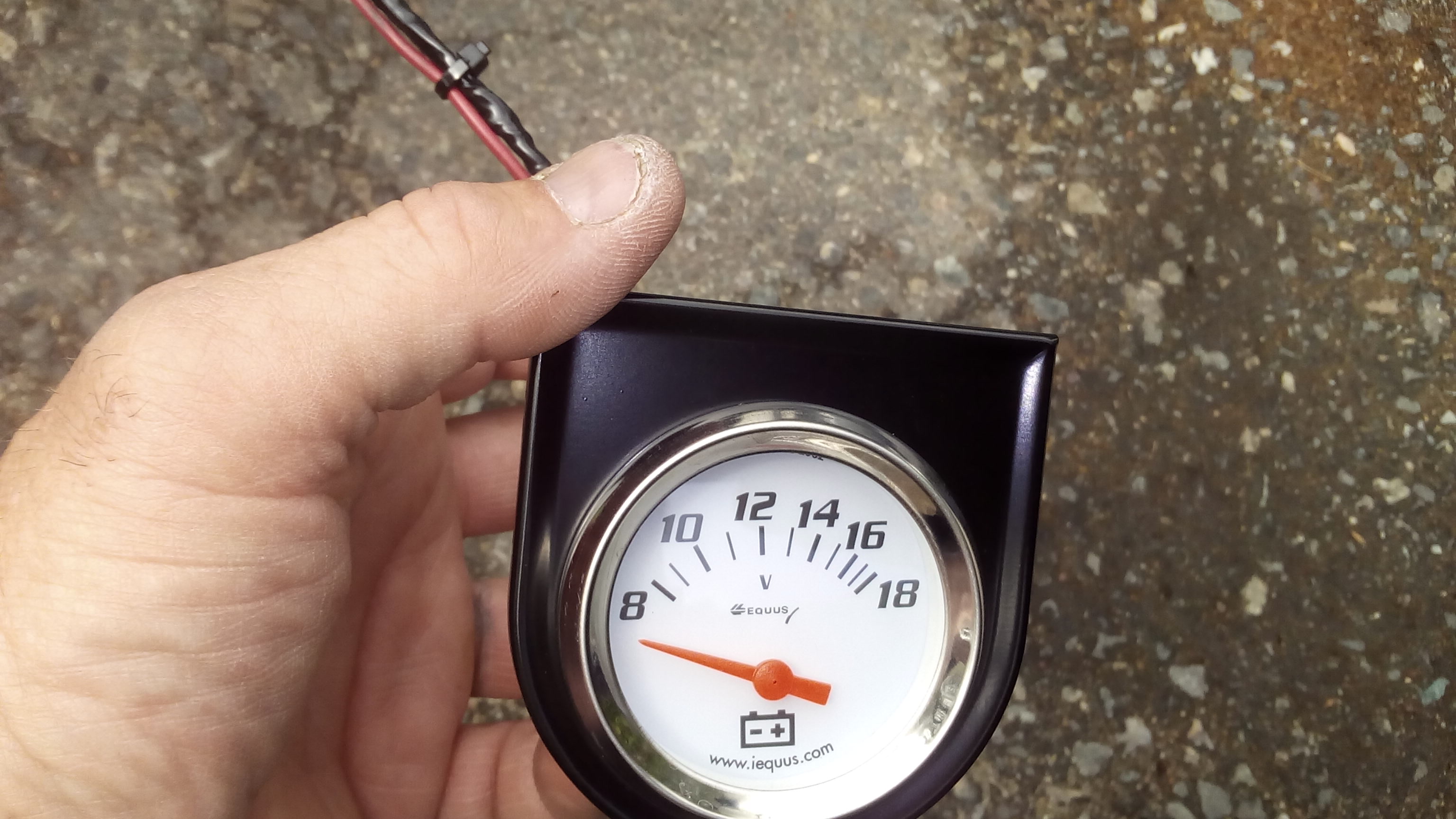 Picked up basic volt gauge w/ clips. Connected to battery. Got 12v , hit start dipped to 10v popped back to 12v. Revd engine, and dropped toward 10v .