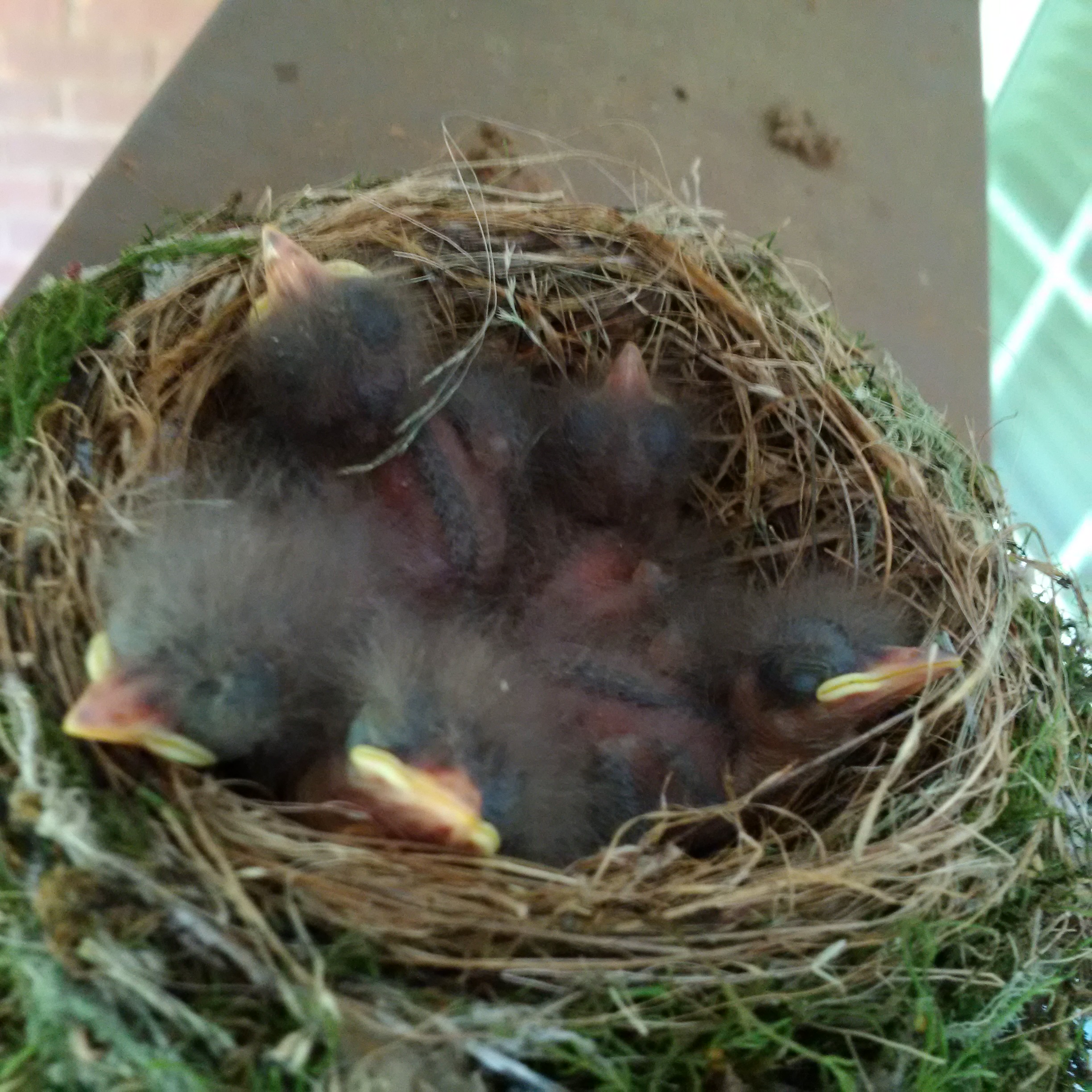 I check on them several times a day (from inside the house through the window) to make sure the kitty cat doesn't bother them, and occasionally get to watch mama feed them.